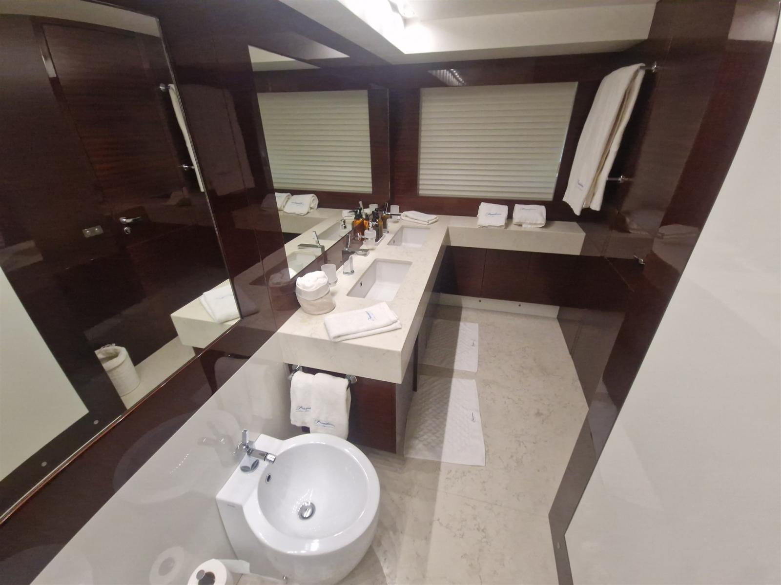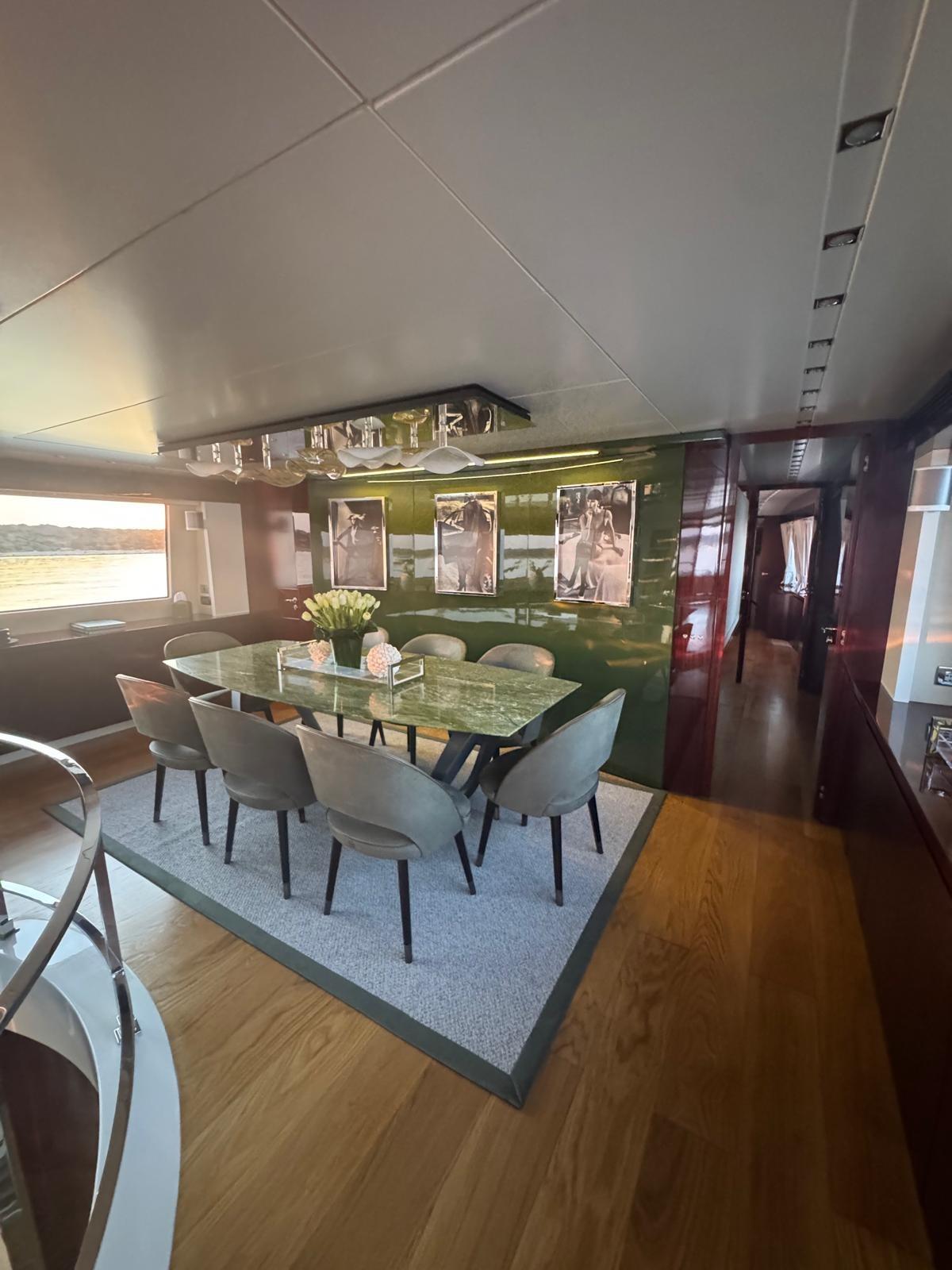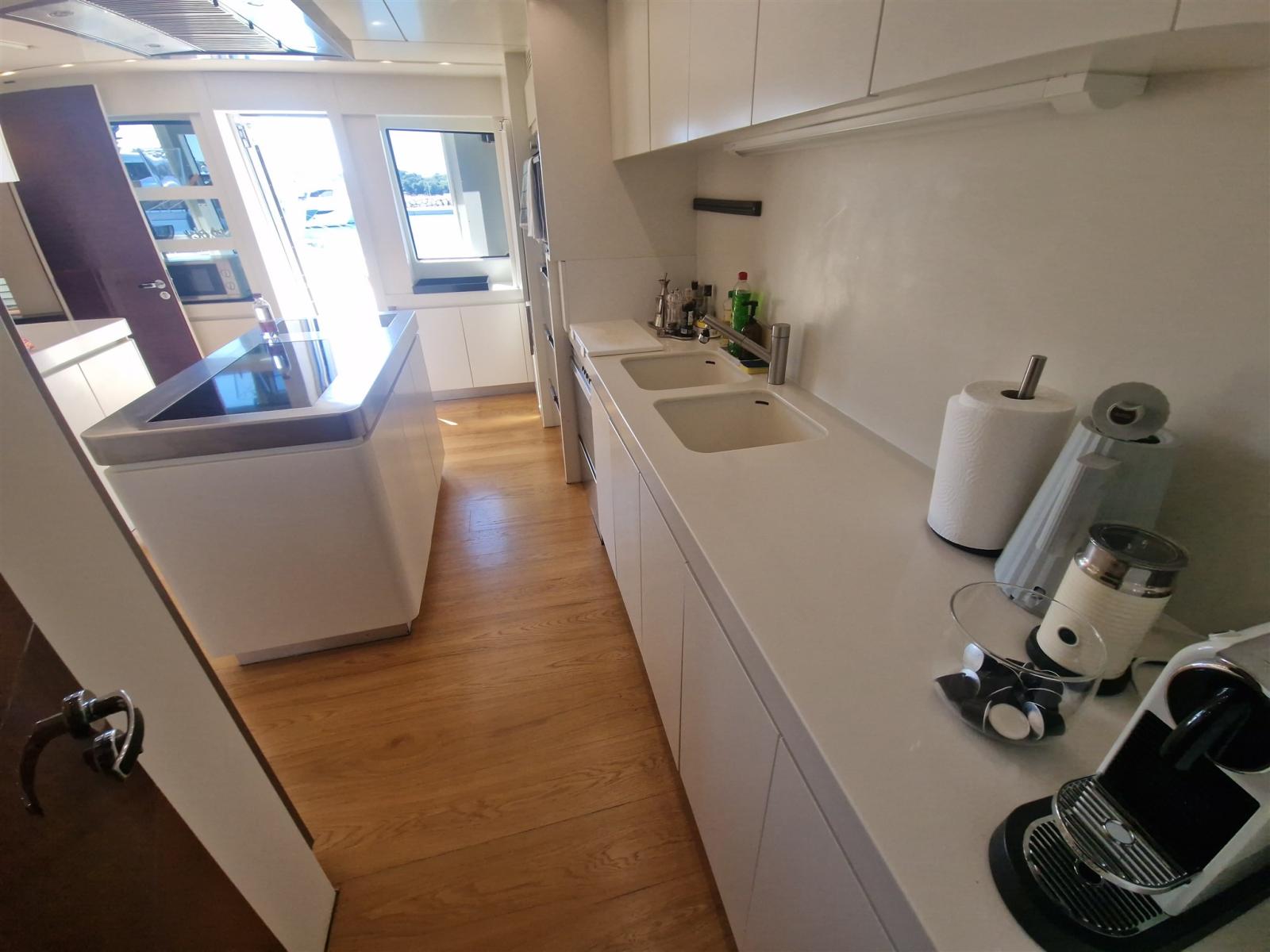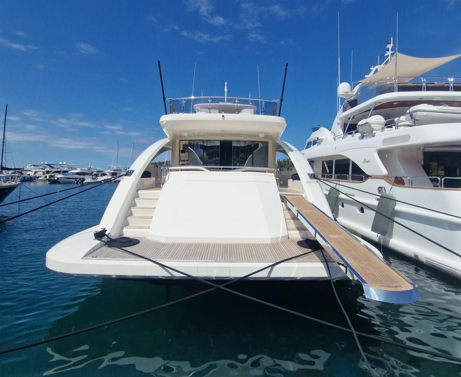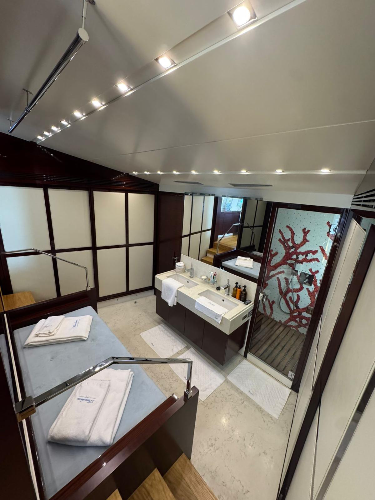 Refit nel 2019.: -Installazione di 2 x nuovi generatori Kohler -Installazione di 4 x stabilizzatori Humphree -Installazione di 2 x dissalatori Idromar -Cabine ospiti aumentate con altri 5 posti (1 cabina - 3 x letti singoli e 1 cabina - 2 x posti in letto matrimoniale, con nuovo bagno in ogni cabina) -Nuovo parquet in ogni stanza -Installazione di TV esterna + nuovo sistema surround (8 x altoparlanti + 4 x subwoofer) -Installazione di bancone bar esterno sul flybridge con 2 griglie elettriche Baratta, piastra elettrica, frigorifero, fabbricatore di ghiaccio e lavello -Nuovo layout del soggiorno con nuovo divano a 7 posti, TV da 70" e sistema surround Sonos (6 x altoparlanti, soundbar e subwoofer)