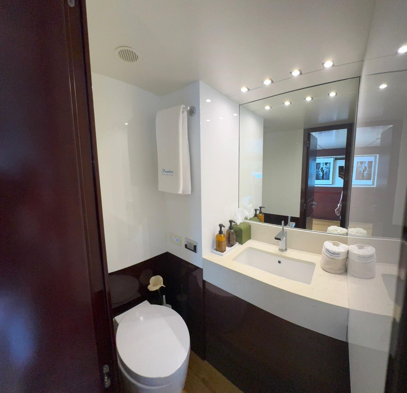 La sistemazione è per un massimo di 11 ospiti in 5 cabine: Master suite, situata sul Main Deck; tre cabine doppie e una cabina doppia con cuccetta Pullman, situate sul ponte inferiore. Tutte le cabine sono dotate di bagno privato completo. Inoltre, c'è una sistemazione per 5 membri dell'equipaggio (1 cabina del capitano e 2 cabine doppie per l'equipaggio).