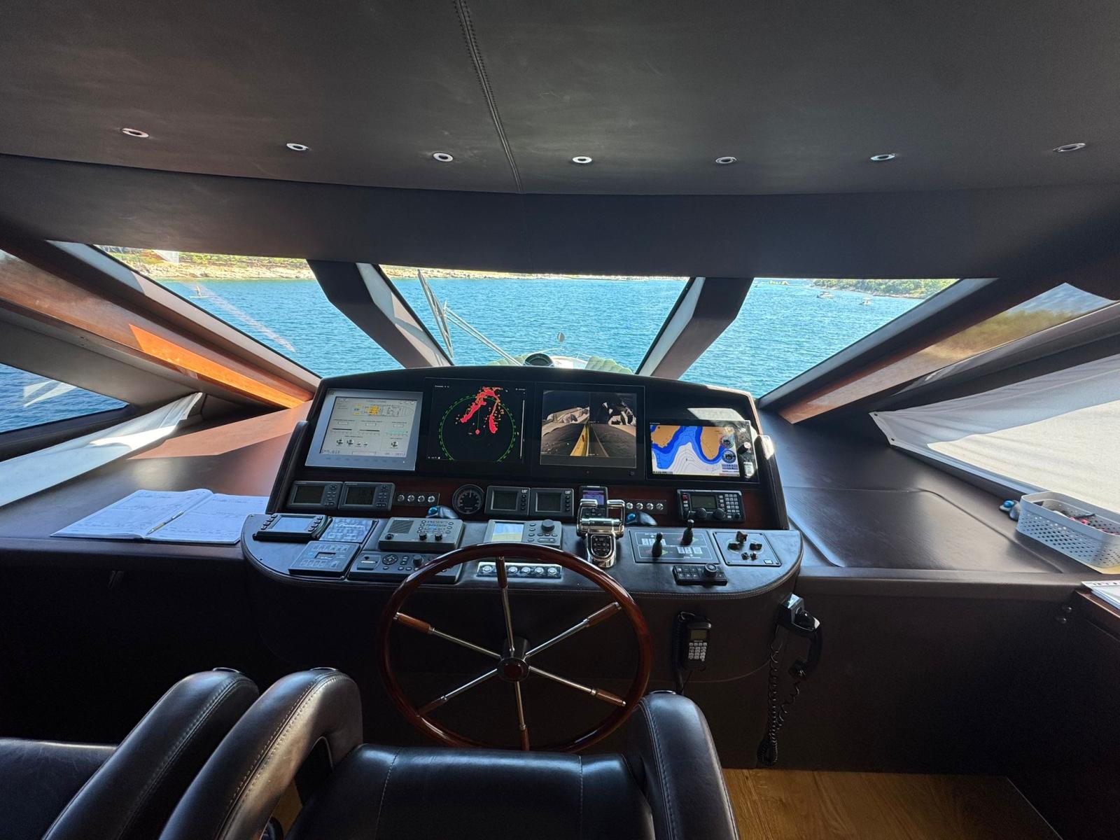 AIS (Furuno FA-30 receiver), Display, GPS (Simrad HS-60 GPS), Pilota automatico (Furuno Navipilot 500 with 2nd station in Cockpit and Electric Wheel), Plotter (Furuno TZTouch (14'' display) – 1 x Wheelhouse and 1 x Master Cabin – both linked to Navnet 3-D), Radar (Furuno antenna open scanner 48nm), Radio VHF (Furuno FM-2721), Sedile Copilota, Stazione vento (Furuno RD-30 repeater (Wheelhouse, Cockpit & Master Cabin)).