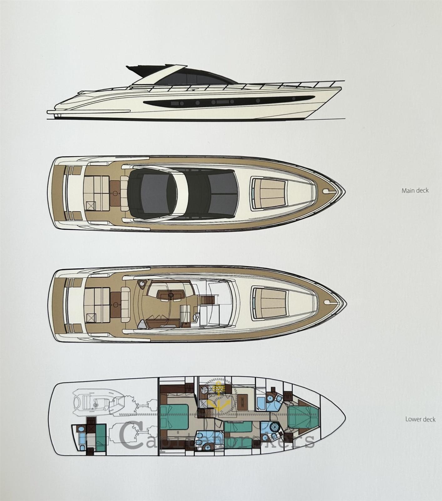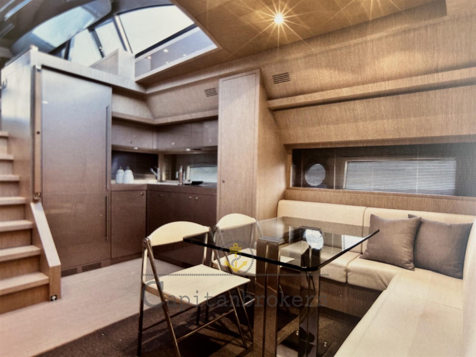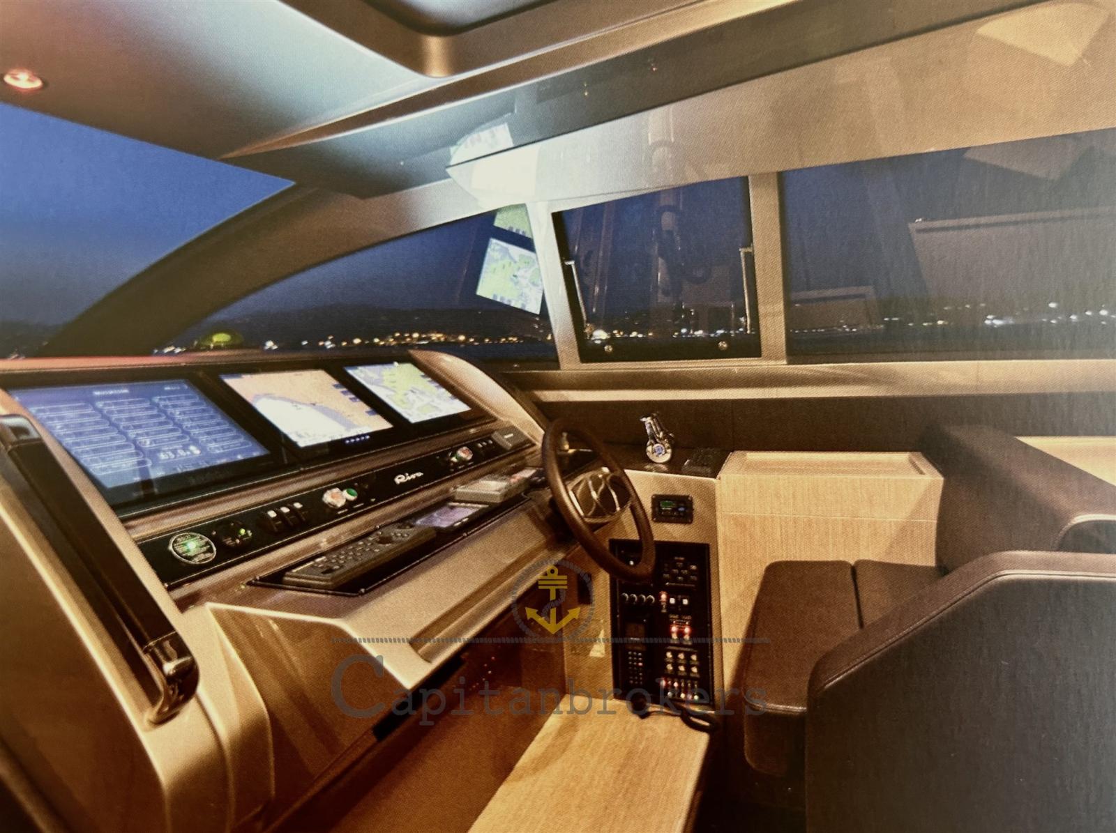 Allarme motore, Allarme sentina, Doccia esterna, Flap elettrici, Garage per tender (Idraulico), Hard top (con apertura elettrica), Indicatori Flaps, Lavaggio catena, Lavandino nel Pozzetto, Passerella (idraulica telescopica), Piattaforma (swimplatform), Pompa di sentina automatica, Pompa di sentina manuale, Porta ingresso, Pozzetto Teak, Presa 220V banchina, Presa acqua banchina, Salpa Ancore Elettrico, Scaletta da bagno (idraulica), Tavolo pozzetto, Tender (Riva modello Avon Idrogetto), 3 Winch Elettrico (n.1 prua, n.2 poppa).