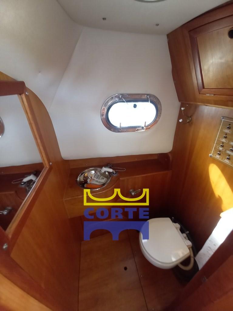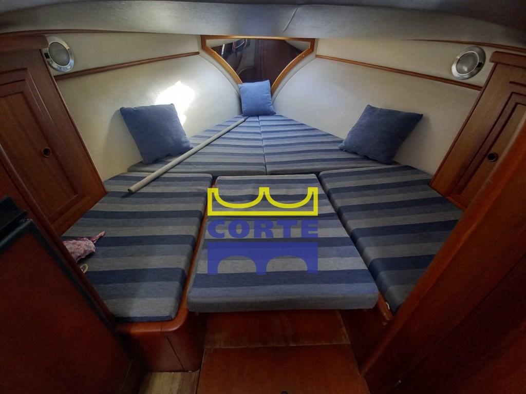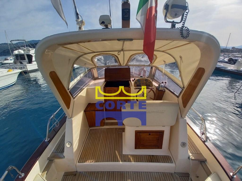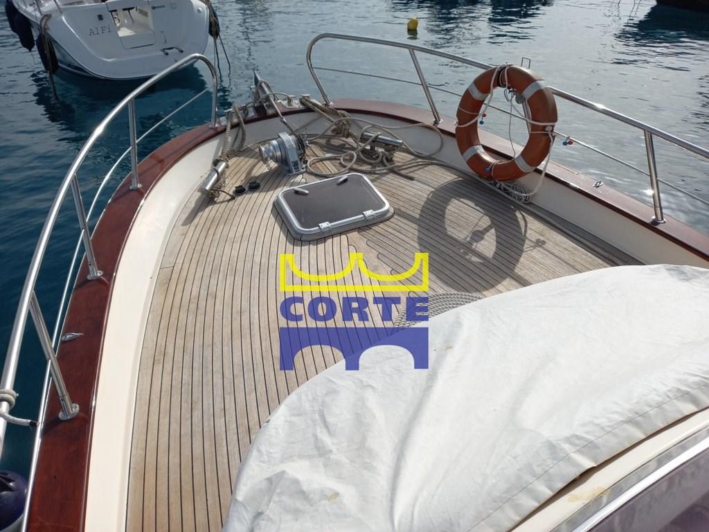 timoneria idraulica con ruota di governo, barra di emergenza, quadro comando in radica, sedile guida 2 posti, lavello, cucina 2 fuochi interna, cucina 1 fuoco esterna, cuscini in cabina, 2 armadietti, passo d'uomo - battagliola