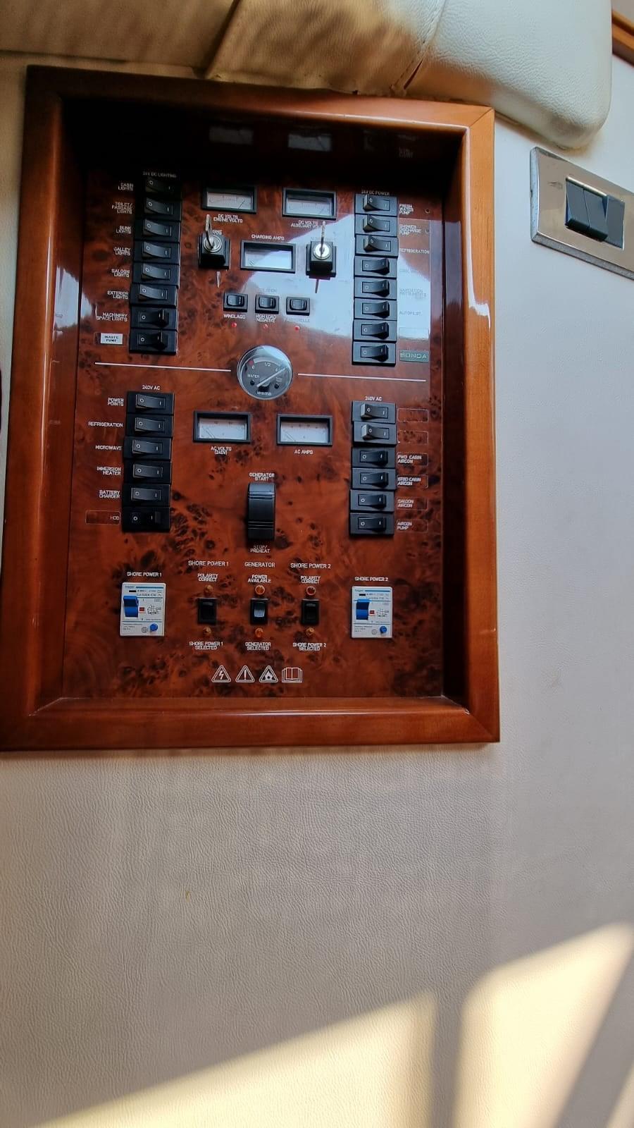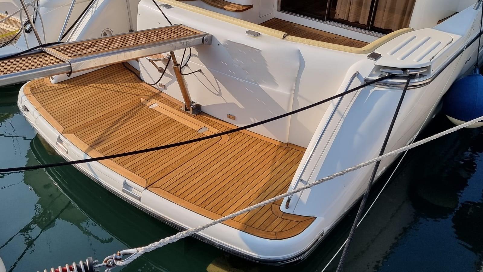 Allarme motore, Allarme sentina, Autoclave, 6 Batterie (Sostituite 2020 Gel), 2 Caricabatterie (Servizi e batt. Gtuppo), Doccia esterna, Doppia timoneria, Faro orientabile, Flap idraulici, Impianto antincendio (A gas), Indicatori Flaps, Lavaggio catena, Luci di cortesia, Passerella (Idraulica), Piattaforma, Pompa di sentina automatica, Pompa di sentina manuale, Porta ingresso, Pozzetto Teak (Nuovo 2019), Presa 220V banchina, Raddrizzatore, Ripetitore strumentazione, Rollbar, Salpa Ancore Elettrico (Nuovo 2021), Scaletta da bagno, Tender (2.50 mt con motore honda 4t nuovo 2021), Tientibene con cancelletti, Winch tonneggio di prua.