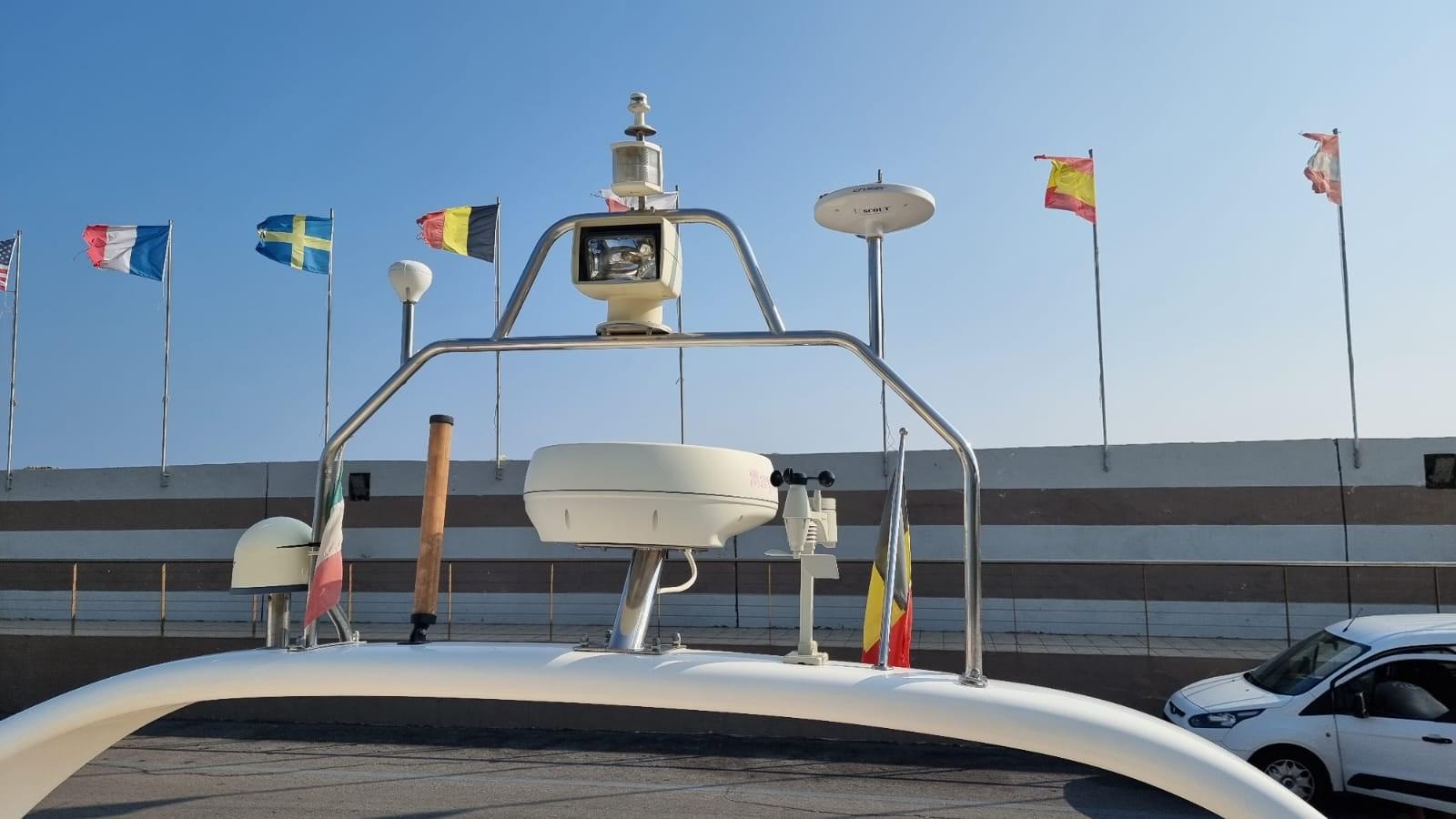 Angolo barra, Antenna radar, Comando motori elettronico, 2 GPS (Raymarine flir serie c), Plotter con antenna GPS, Sedile Copilota.