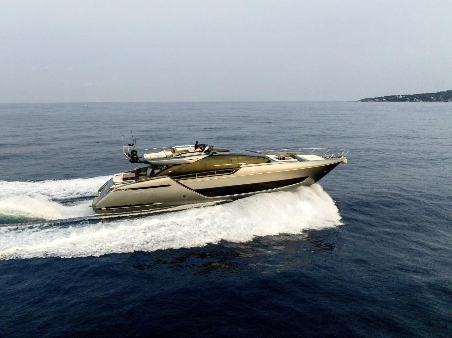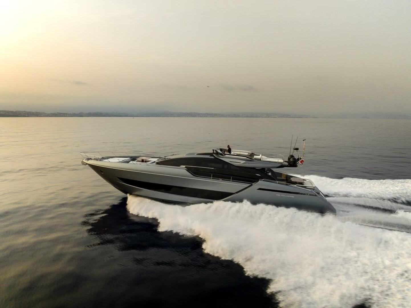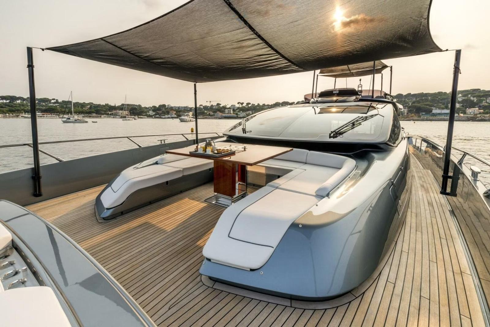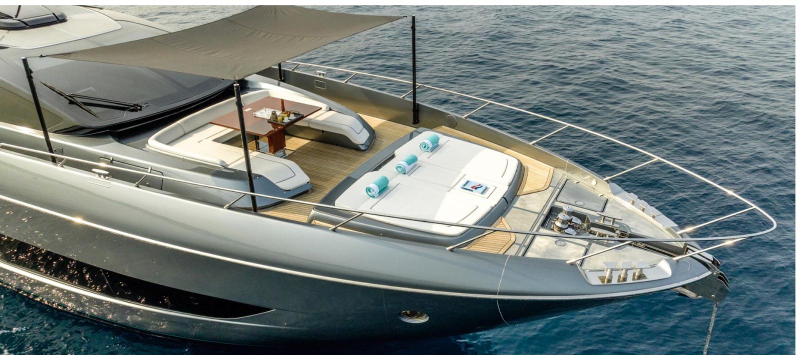 3 Bimini (a prua, poppa e flybridge con pali in carbonio), Cuscineria completa (esterna personalizzata), Tenda Elettrica (oscuranti).