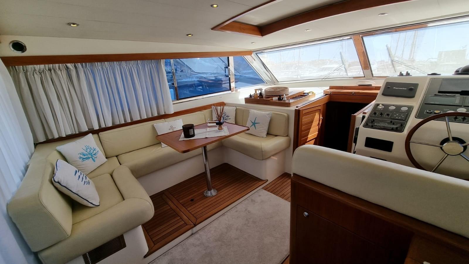 Boiler, Cassaforte, Clima reversibile, Impianto acque nere, Pavimento interno in legno, Prese interne 12v, Prese interne 220v, Serbatoio Acque Nere, 3 Telecamera, WC marino elettrico.