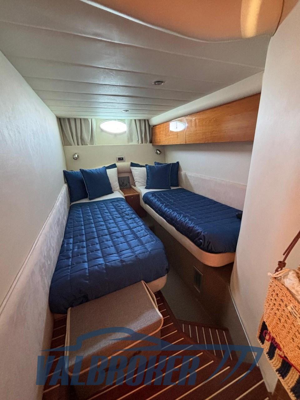 Modello intramontabile della gamma V di Princess, bellezza senza tempo e qualità inglese allo stato puro. Cabina armatoriale a prua, cabina con due letti singoli a poppa e 2 bagni. Garage per tender. Prendisole fisso a poppa. 2x Volvo penta 615 HP turbo diesel linea d'assi. Barca sempre rimessata al coperto. Imbarcazione totalmente refittata nel 2023 (piani di appoggio e pareti),Serbatoio acque nere, Batterie motori 2024, Sostituzione pompe e galleggianti scarichi doccia,Impianto audio Alpine con controllo remoto