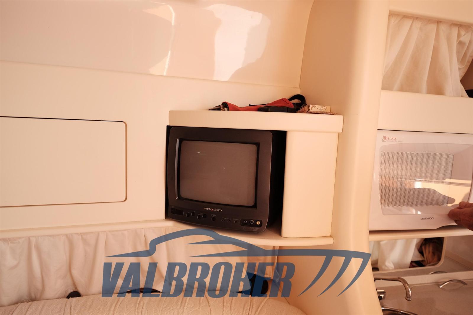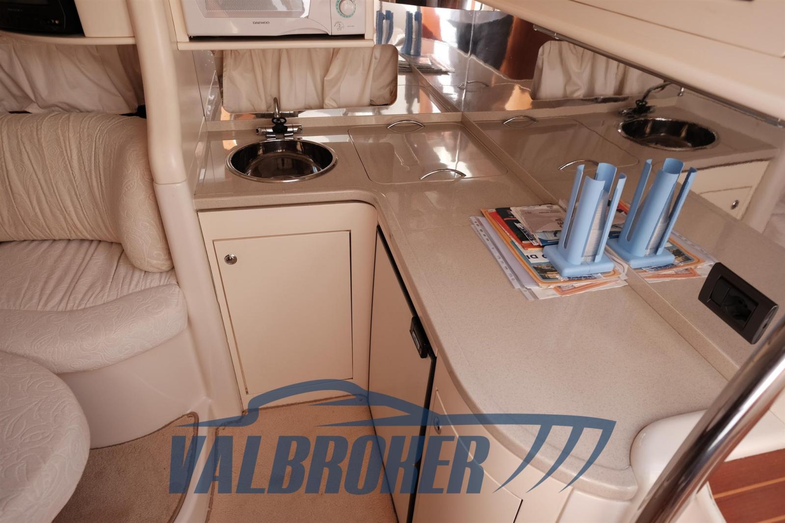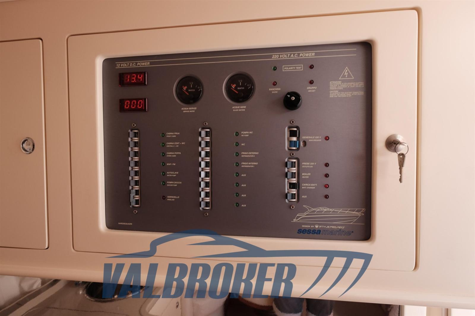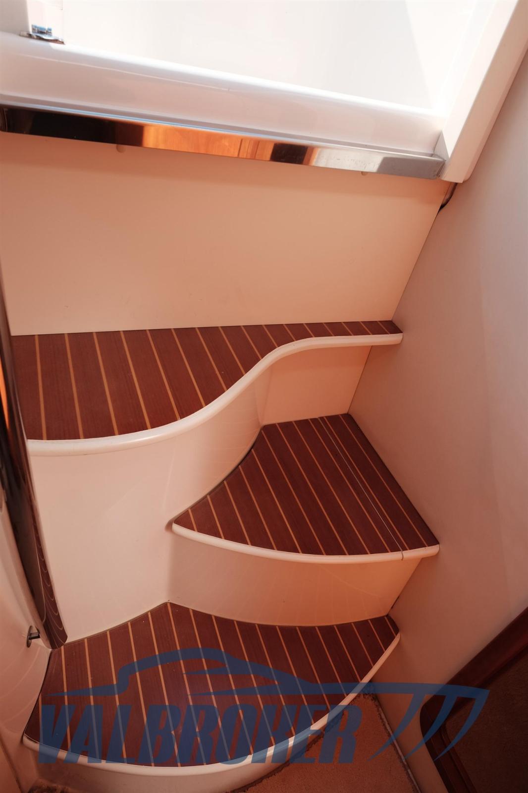 Ancora (40 m catena), Apertura Vano Motore Elettrica, Autoclave, 3 Batterie, Doccia esterna, Flap idraulici, Lavandino nel Pozzetto, Luci di cortesia, Luci subacquee, Passerella (Idraulica), Piattaforma (Teak), Rollbar, Salpa Ancore Elettrico (Comando anche a prua), Scaletta da bagno, Tavolo pozzetto (Si trasforma in prendisole).