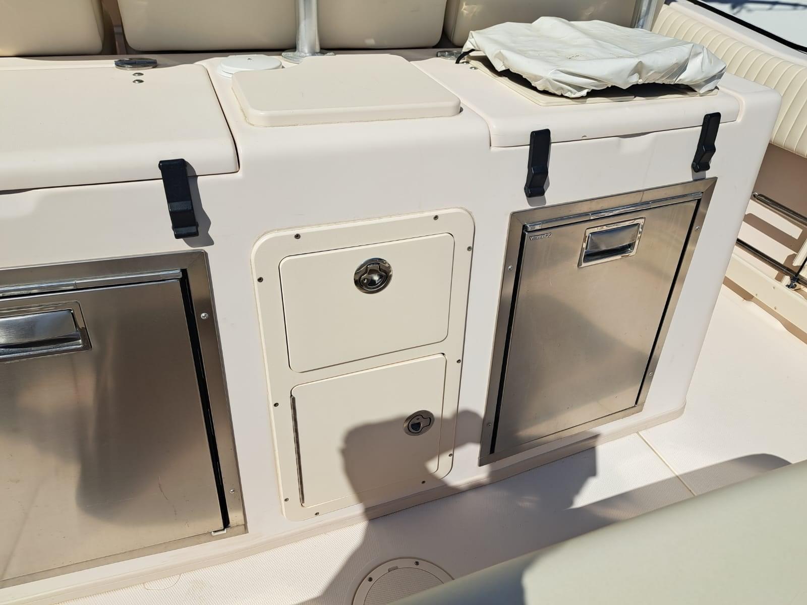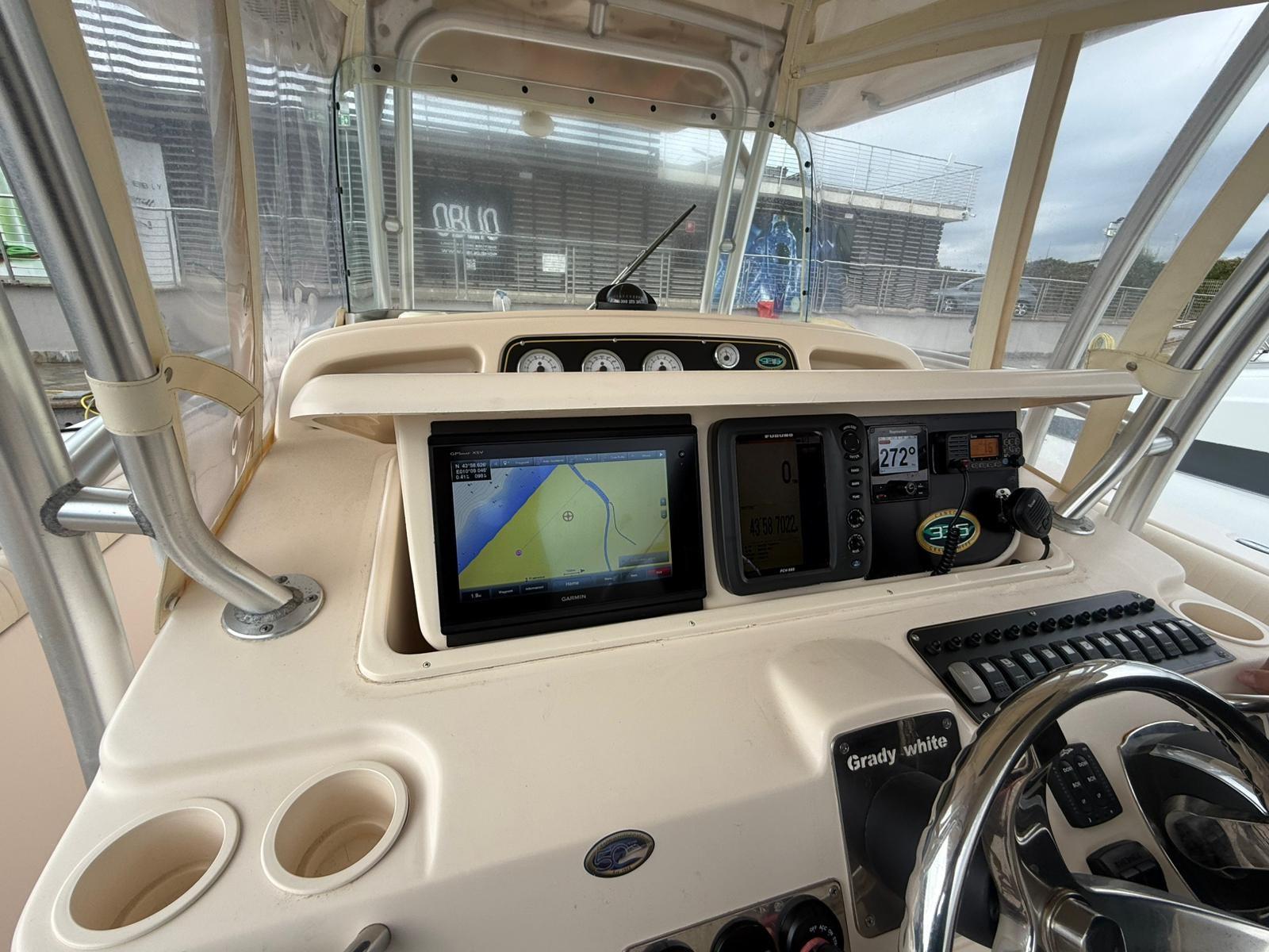 GRADY WHITE 336 CANYON CON DUE MOTORI MERCURY DA 400HP DEL 2020 T – TOP CON PORTACANNE E LUCI IN POZZETTO – BATTAGLIOLA INOX 316 – FLAPS RIENTRANTI IN CARENA – DIVERGENTI TELESCOPICI - PRESE 12 V PER MULINELLI ELETTRICI – TRASDUTTORE ECO A RASO – RISCALDAMENTO E ARIA CONDIZIONATA - ELICHE INOX ELICA DI PRUA INVERTER .