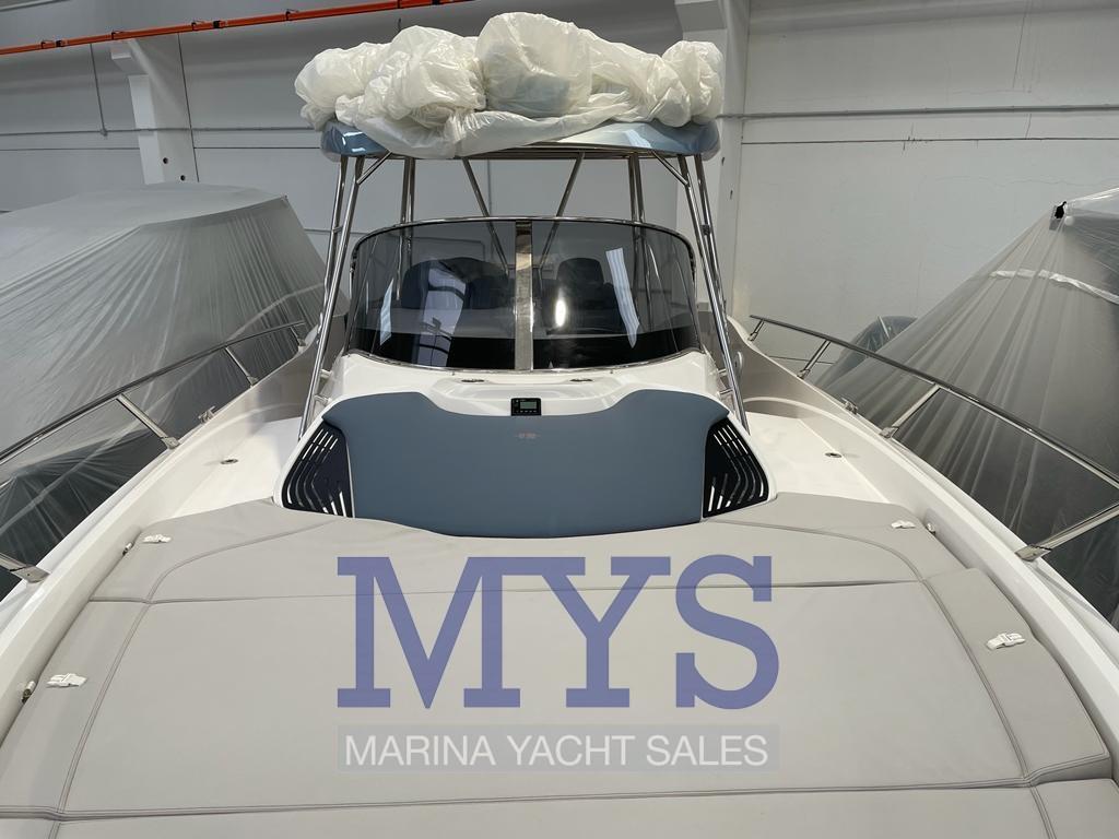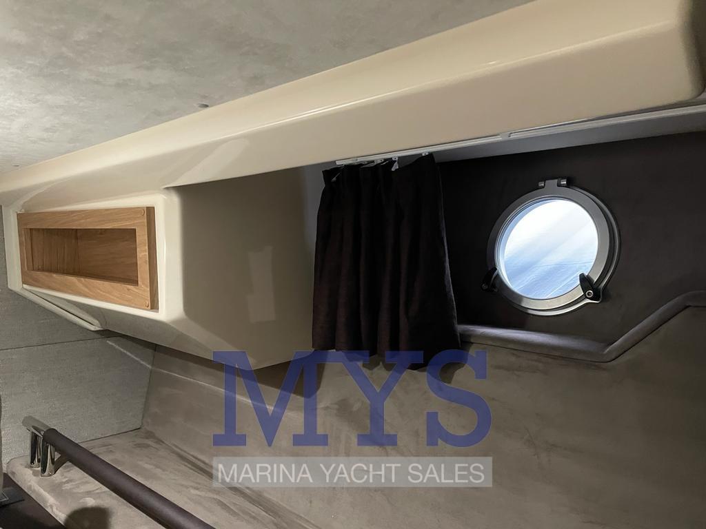 Allarme motore, Autoclave, Doccia esterna, Flap elettrici, Luci subacquee, Pompa di sentina automatica, Pompa di sentina manuale, Porta ingresso, Pozzetto Teak, Presa 220V banchina, Salpa Ancore Elettrico, Scaletta da bagno, Tavolo pozzetto, Tromba, T-Top.