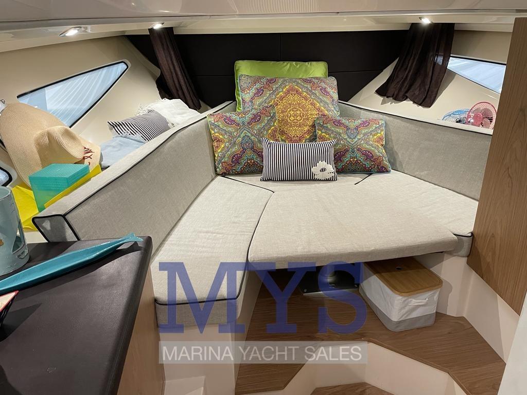Per questa versione entrofuoribordo della Key Largo 34, Sessa Marine ha studiato un’ergonomia centrata sulla vita di bordo nella zona poppiera. Il Key Largo 34 entrofuoribordo vanta, infatti, una plancetta di poppa eccezionalmente larga che accoglie ospiti e bambini in tutta sicurezza, un prendisole che può diventare ancora più grande ribaltando lo schienale del divano, un grande cockpit con tavolo centrale trasformabile e una comoda zona cocktail dotata di un mobile cucina.