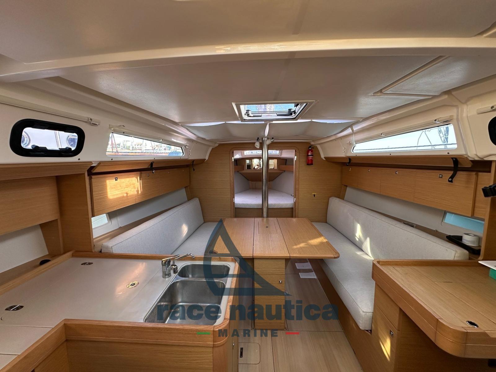 Oblò apribile aggiuntivo grande cabina di poppa sinistra lato pozzetto, Interni in rovere, Piani in corian grigio, Paglioli OAK, Supplemento per motore 29hp sail drive, elica di prua retrattile, elettronic cruising pack, elica a due pale abbattibili, 2 winch AR T40 per scotta randa, genoa e gennaker, attrezzatura gennaker con delfiniera fissa, upgrade per sedute pozzetto in teak sintetico con fughe grigie, protezione prua in inox, cuscineria pozzetto colore chinè, ancora con catena 50mt, 6 parabordi, 3 cime d'ormeggio, serbatoio acqua aggiuntivo.
