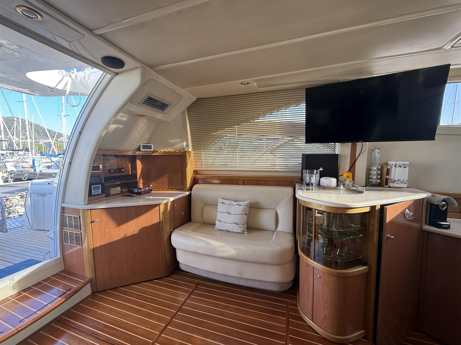 Allarme motore, Allarme sentina, Alternatore, Autoclave, Cavo corrente di banchina, Corrimano, Doccia esterna, Doppia timoneria, Faro orientabile, Flap elettrici, Impianto antincendio, Indicatori Flaps, Lavandino nel Pozzetto, Luci di cortesia, Luci subacquee, Parabordi, Passerella, Piattaforma, Pompa di sentina automatica, Pompa di sentina manuale, Porta ingresso, Pozzetto Teak, Presa 220V banchina, Ripetitore strumentazione, Rollbar, Salpa Ancore Elettrico, Scaletta da bagno, Tavolo pozzetto, Tientibene con cancelletti, Tromba.