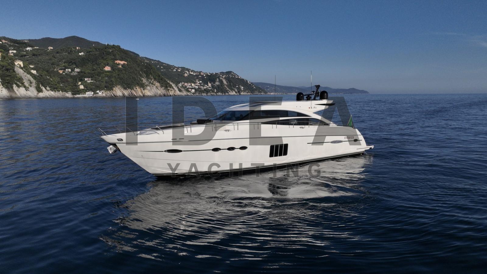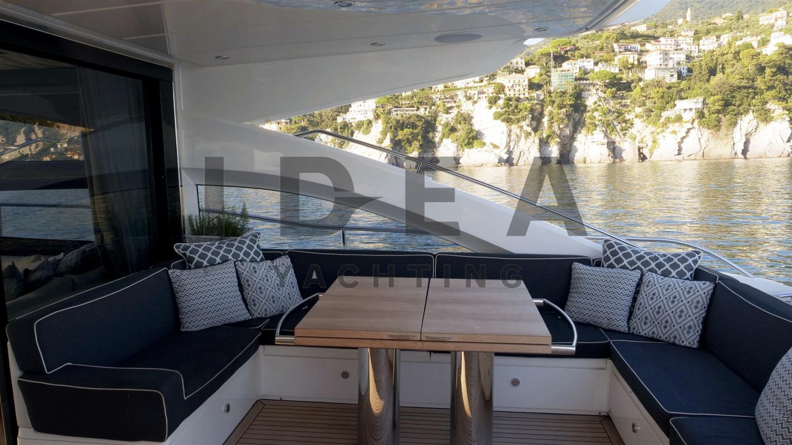 M/Y GIA GIA' è uno splendido yacht che combina un design senza tempo, prestazioni potenti e una manutenzione meticolosa. Spinta da due motori MTU da 1600 CV in sole 644 ore, combina prestazioni sportive con un'eleganza raffinata. Il suo spazioso pozzetto è dotato di una comoda area salotto e prendisole, mentre la piattaforma da bagno elettrica con sistema di salita e discesa aggiunge praticità e facilità d'uso. Il salone è progettato per il relax e la socializzazione, con un tavolino in pelle, un divano e una zona pranzo comodamente situati accanto alla postazione di guida.