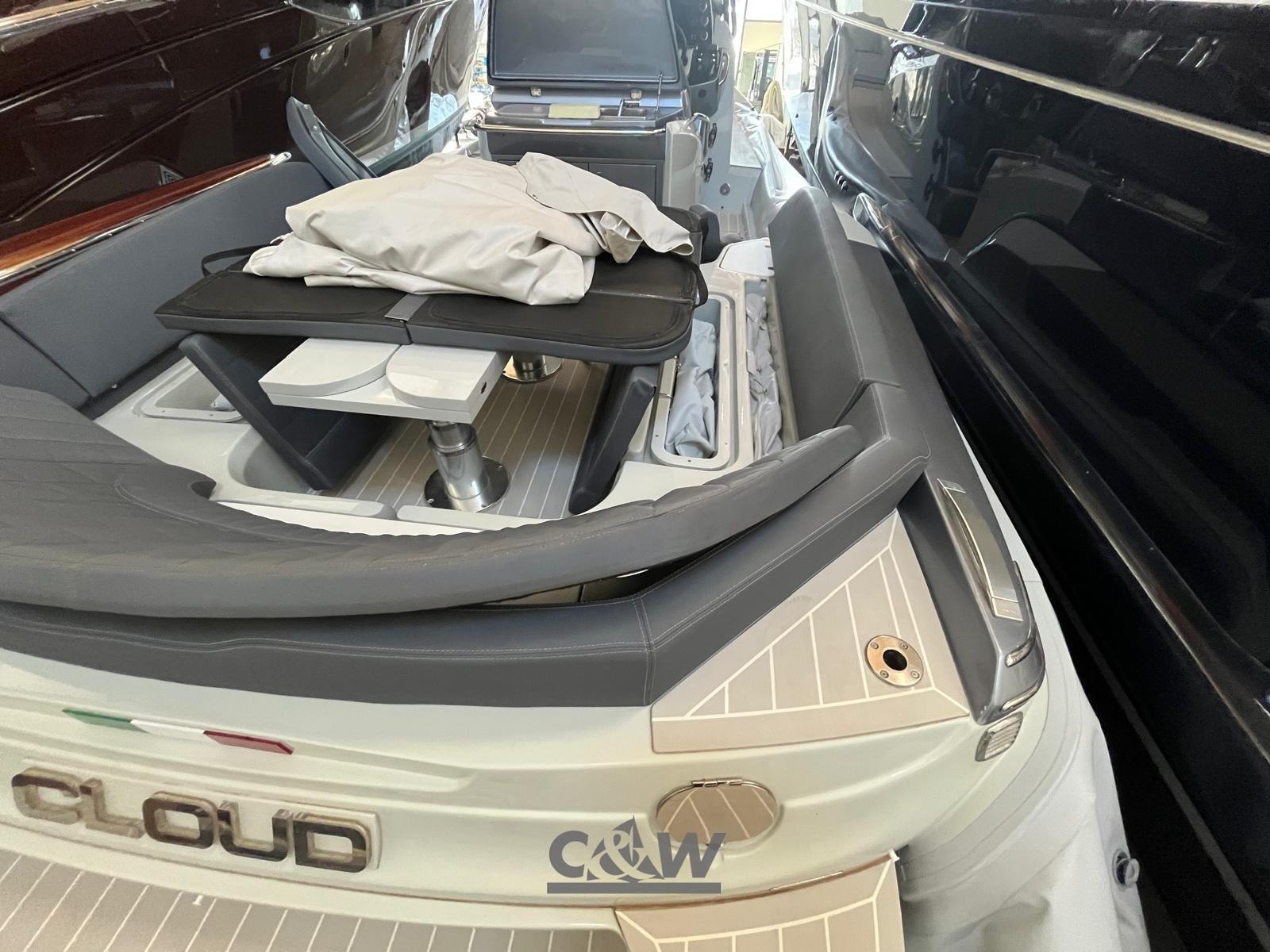 Cavo corrente di banchina, Doccia esterna, Lavandino nel Pozzetto, Luci di cortesia (pozzetto), Luci subacquee (poppa), 6 Parabordi, Pompa di sentina automatica, Salpa Ancore Elettrico, Scaletta da bagno, Tavolo pozzetto (elettrico), Tromba, T-Top (fibra di carbonio e acciaio verniciato in grigio).
