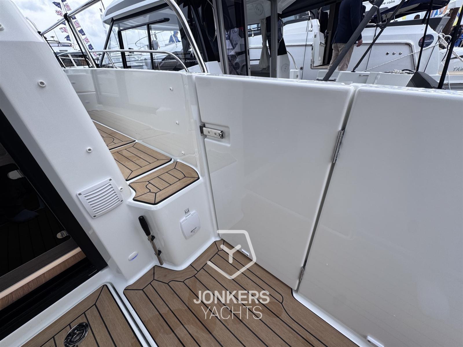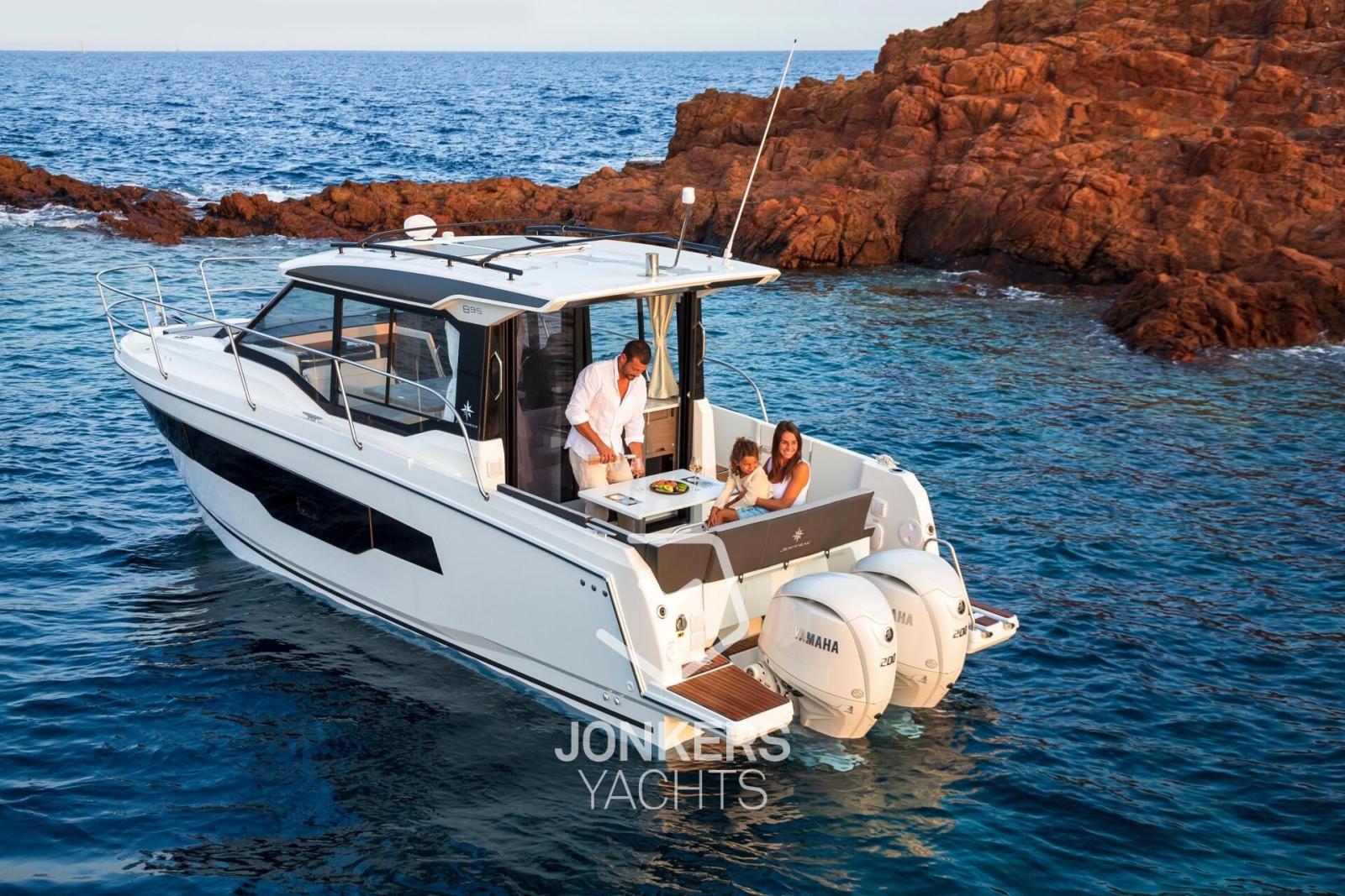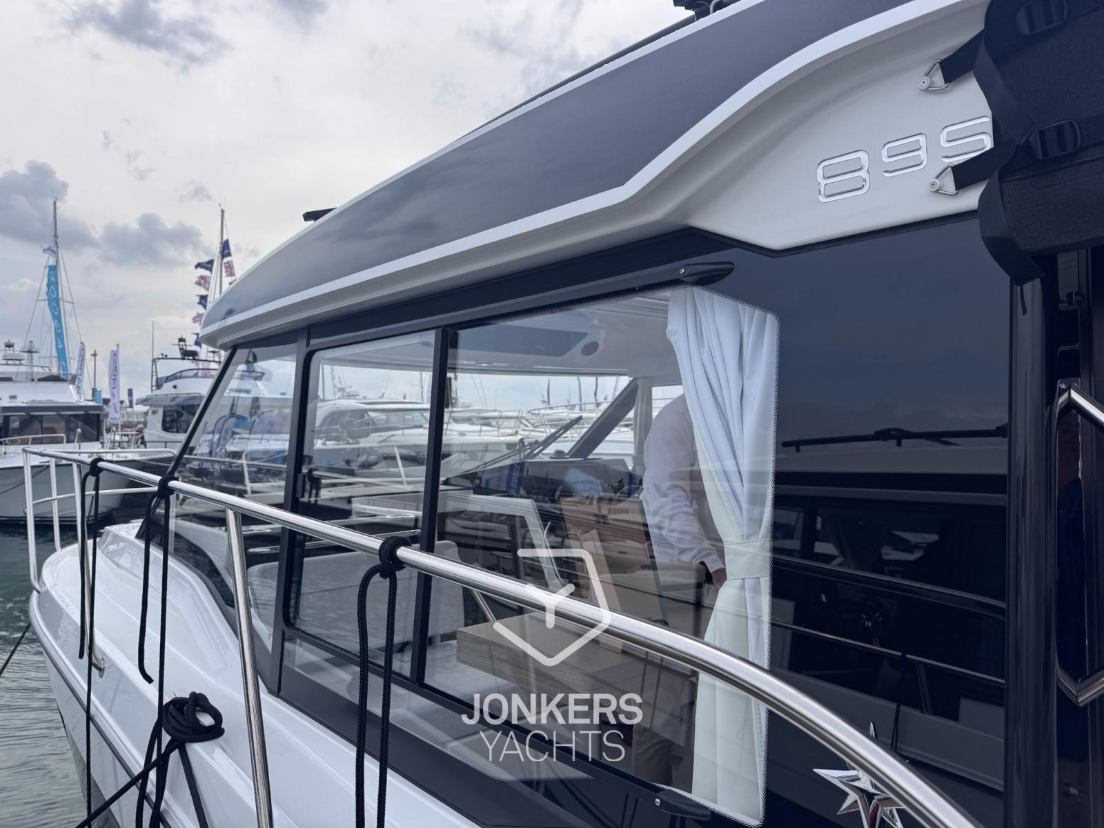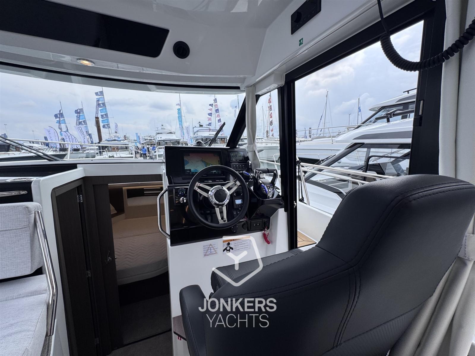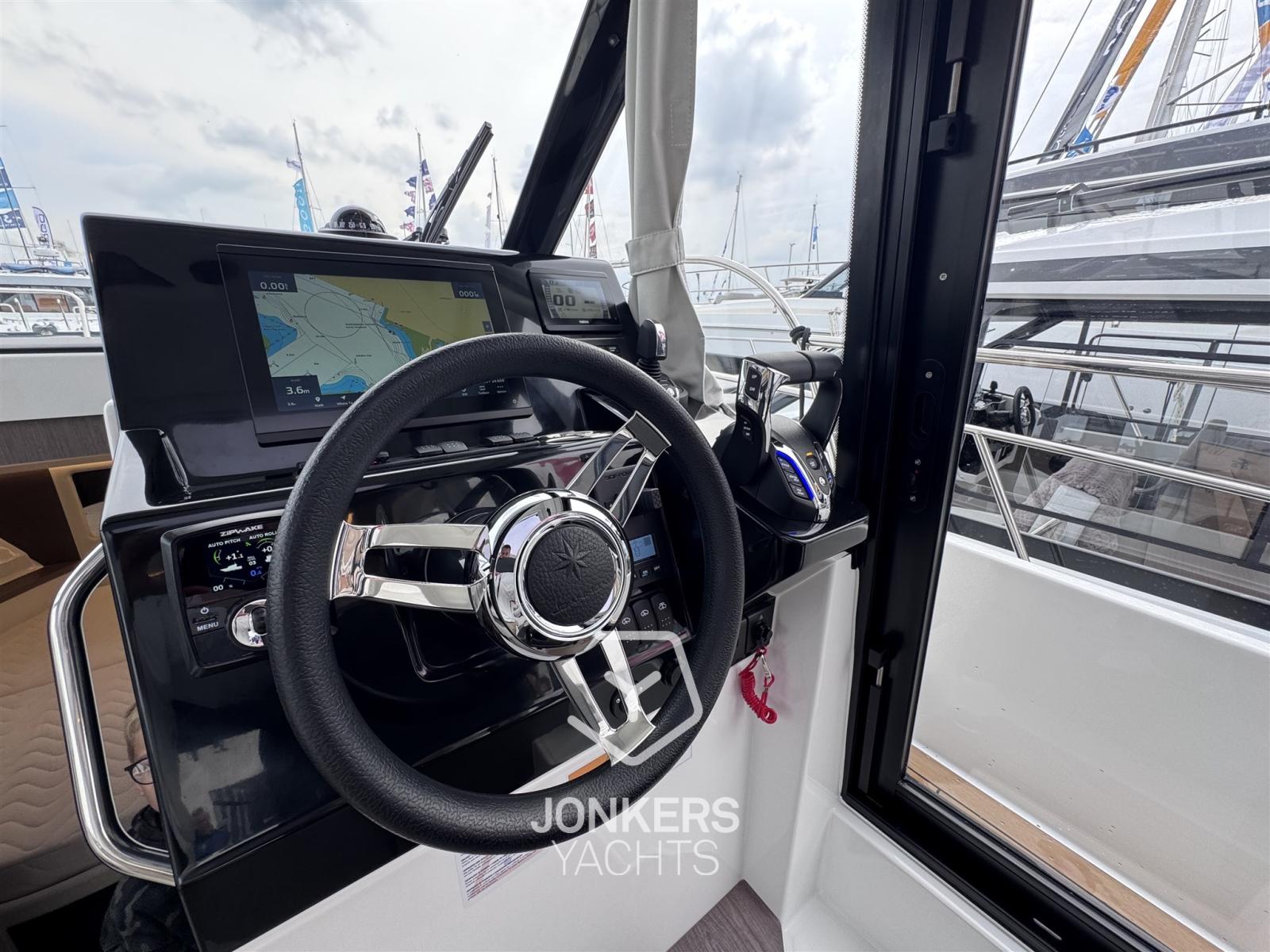 Le grandi finestre nello scafo e nel tetto della tuga si inseriscono perfettamente nella silhouette potente e sportiva. Il nuovo scafo permette di planare a partire da 20 nodi, una velocità facilmente raggiungibile con i suoi due motori, 2 x 250 CV alla massima velocità, garantendo comfort e manovrabilità.