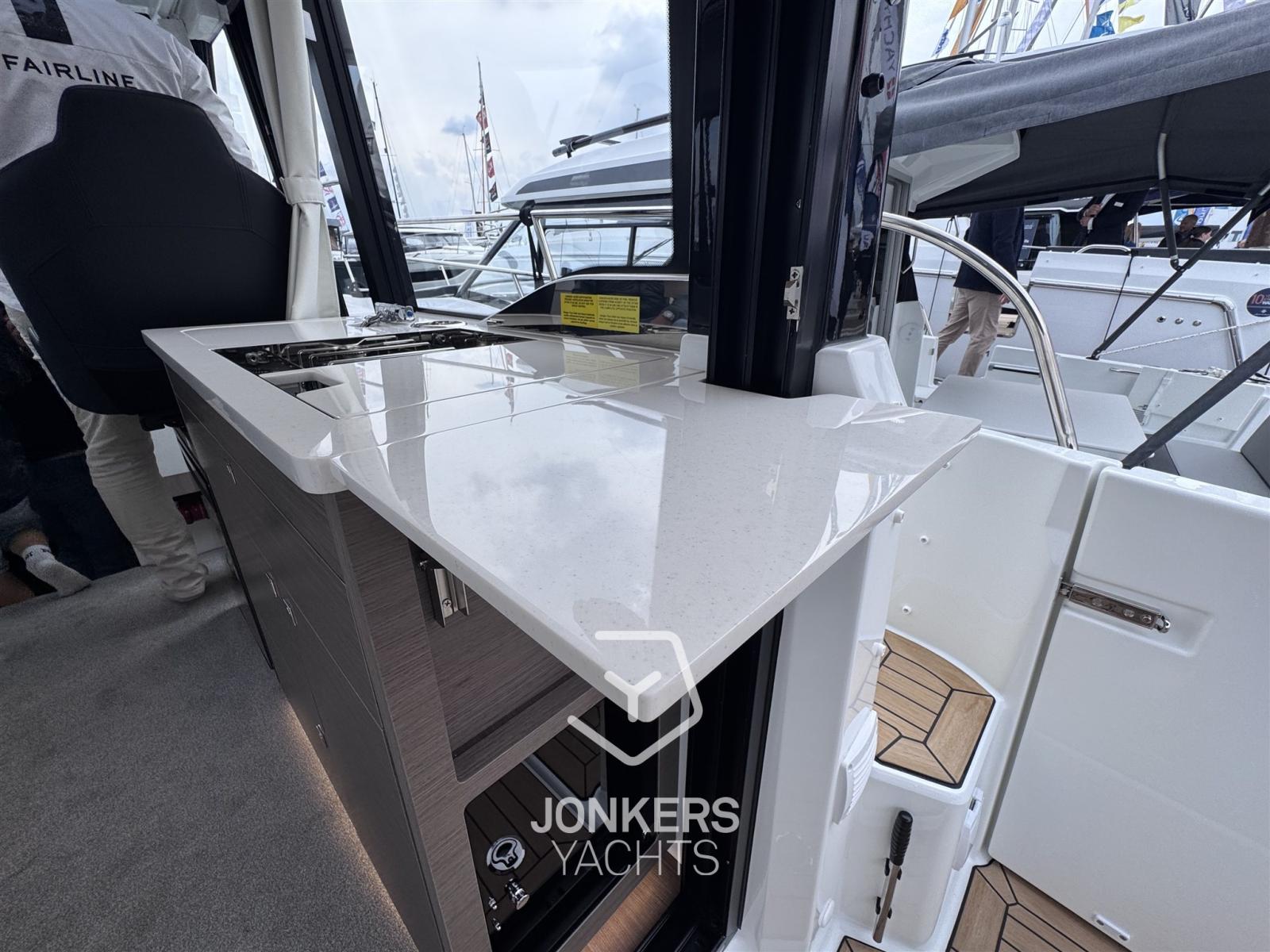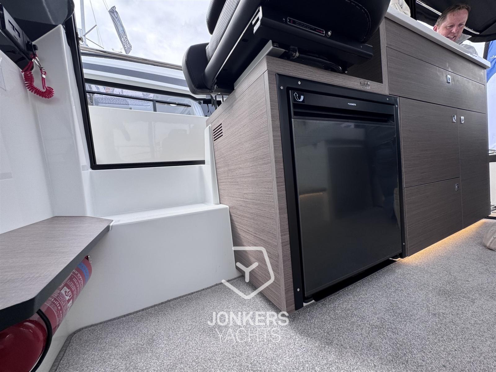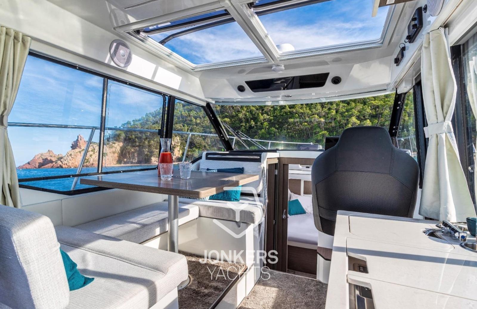 Lo spazio interno offre una vista a 360 gradi sul mare. Un sacco di spazio di stivaggio e una cucina nuova, moderna e pratica contribuiscono a rendere piacevole il tempo a bordo. Quando splende il sole, la porta scorrevole in vetro può essere fatta scorrere via per portare lo spazio abitativo nel pozzetto. Con il Merry Fisher 895 Serie 2, le crociere per famiglie sono possibili in qualsiasi stagione.