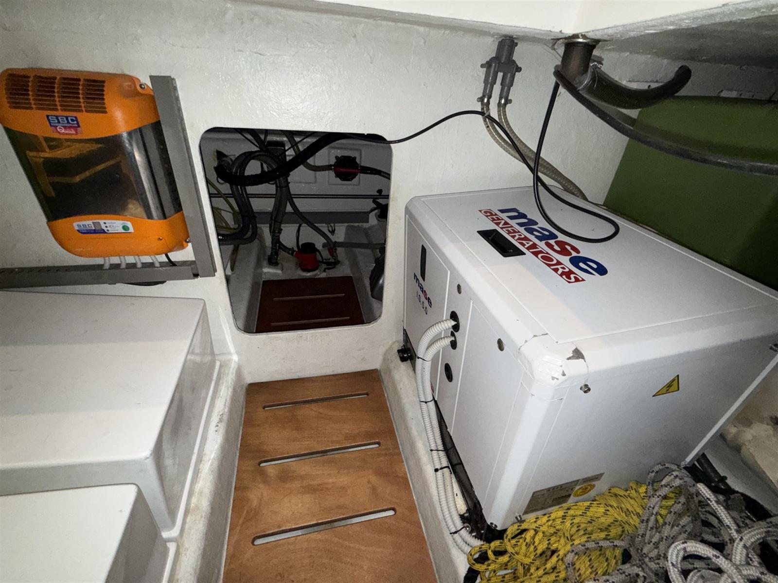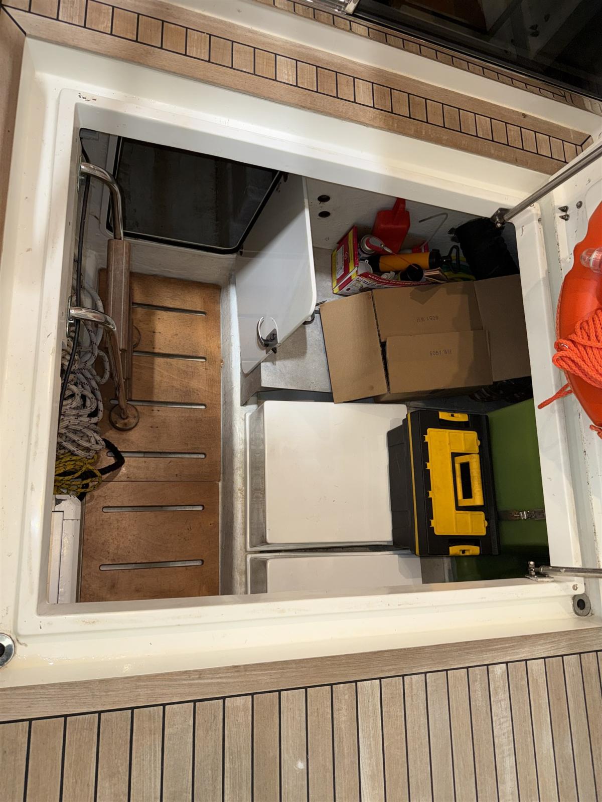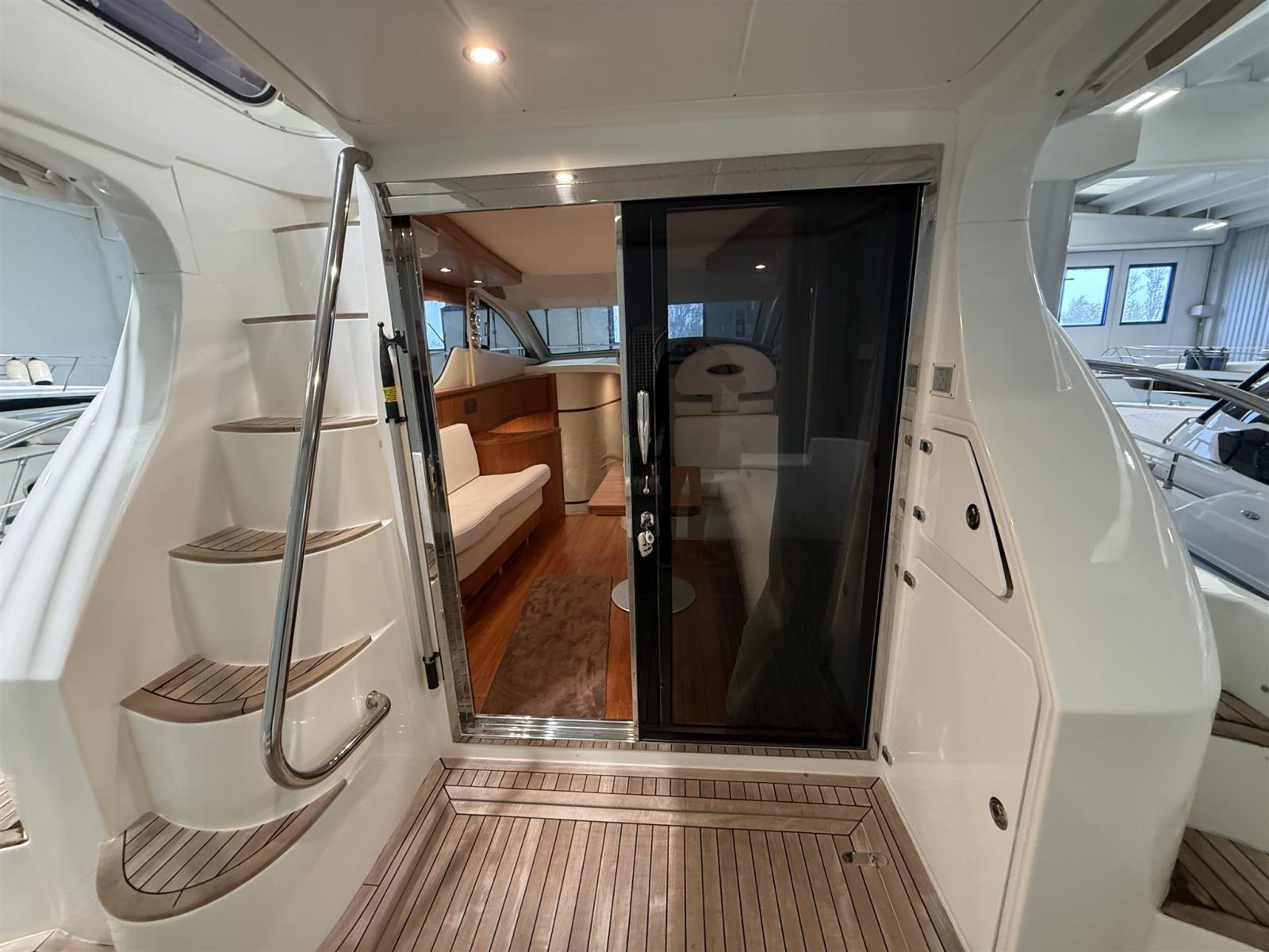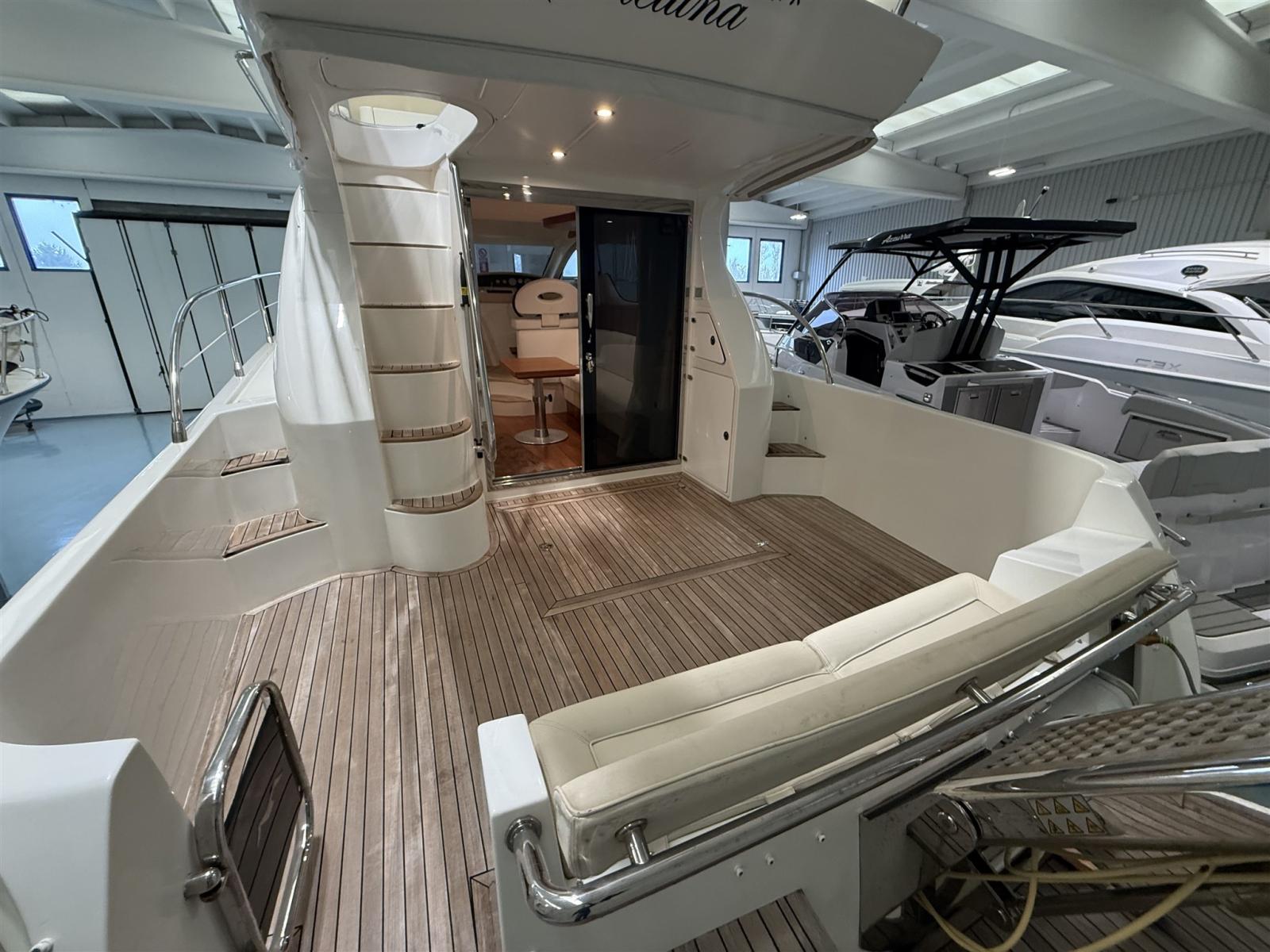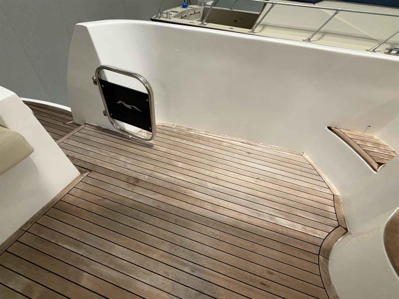 Allarme fumo/gas, Allarme motore, Autoclave, Cavo corrente di banchina, Doccia esterna, 2 Flap idraulici, Passerella (IDRAULICA), Piattaforma, Pompa di sentina automatica, Pozzetto Teak, Presa 220V banchina, Rollbar, Salpa Ancore Elettrico, Scaletta da bagno, Tromba.
