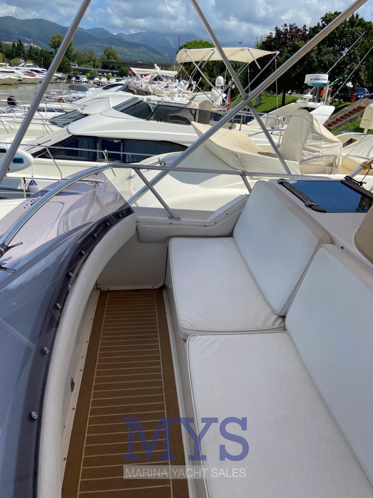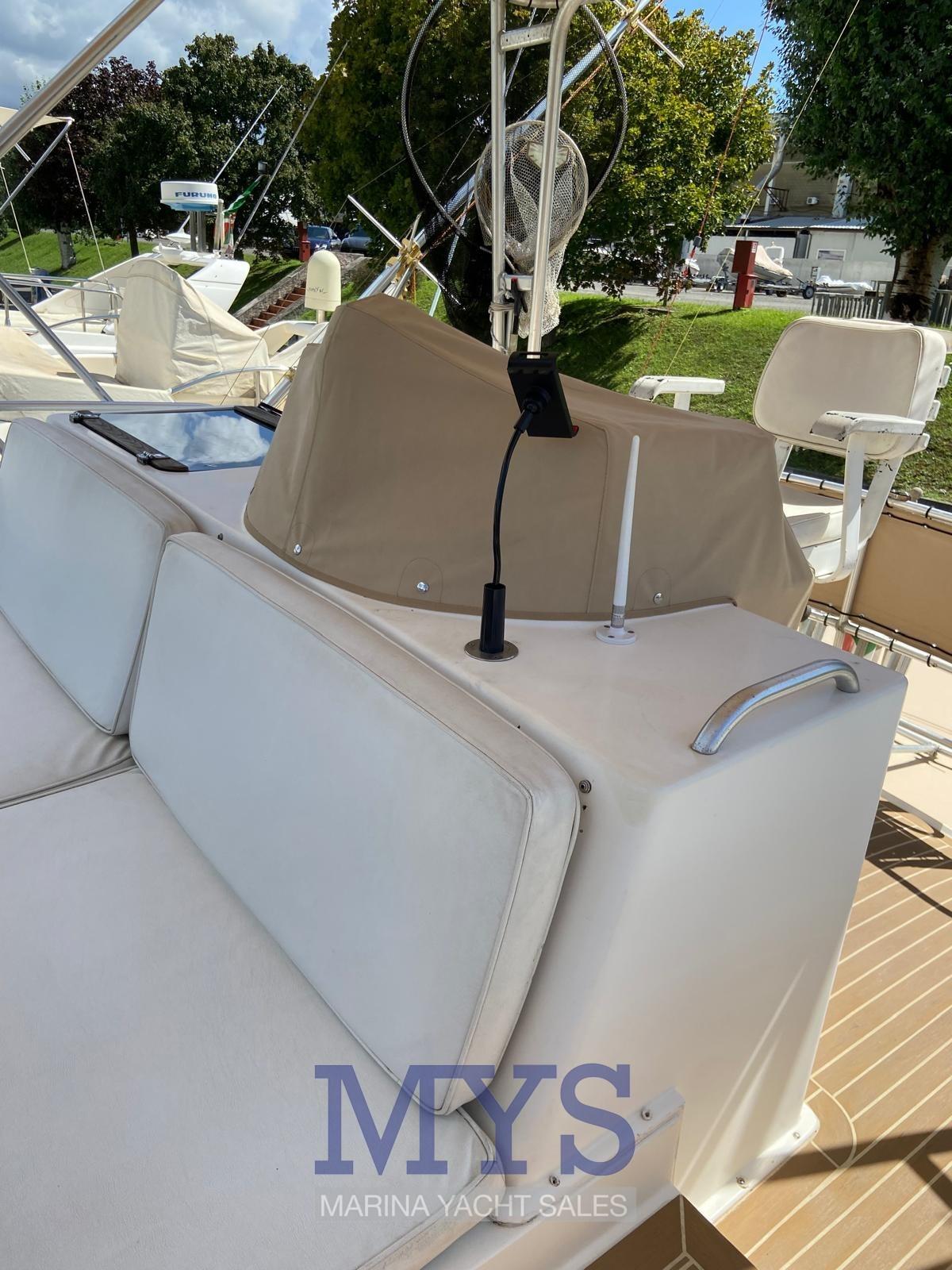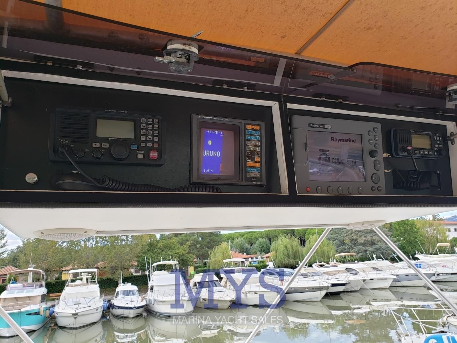 Angolo barra (display pilota), Antenna radar (Raymarine), DSC vhf, 2 Ecoscandaglio (Raymarine + Furuno), GPS (Raymarine), Log (non funziona), Plotter con antenna GPS (Raymarine), Quadro comandi, Radar (Raymarine), Sedile Copilota (su Fly), Strumenti di misura per motori.
