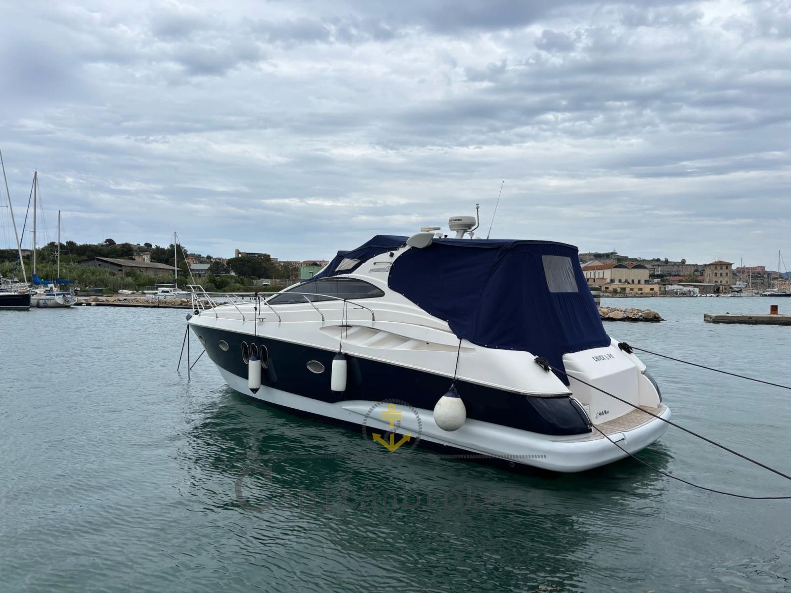 Open dotato di cabina armatoriale a prua con letto matrimoniale, cabina ospiti con letti in piano separati, n. 1 bagno con box doccia.