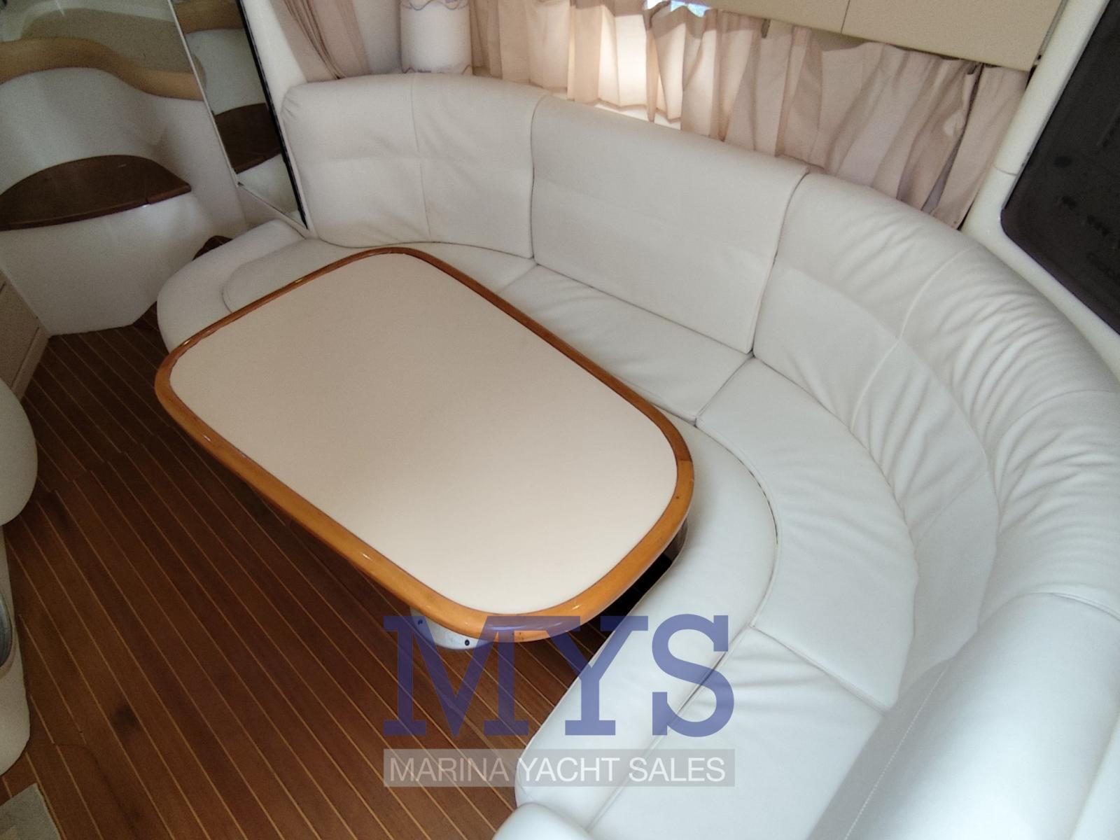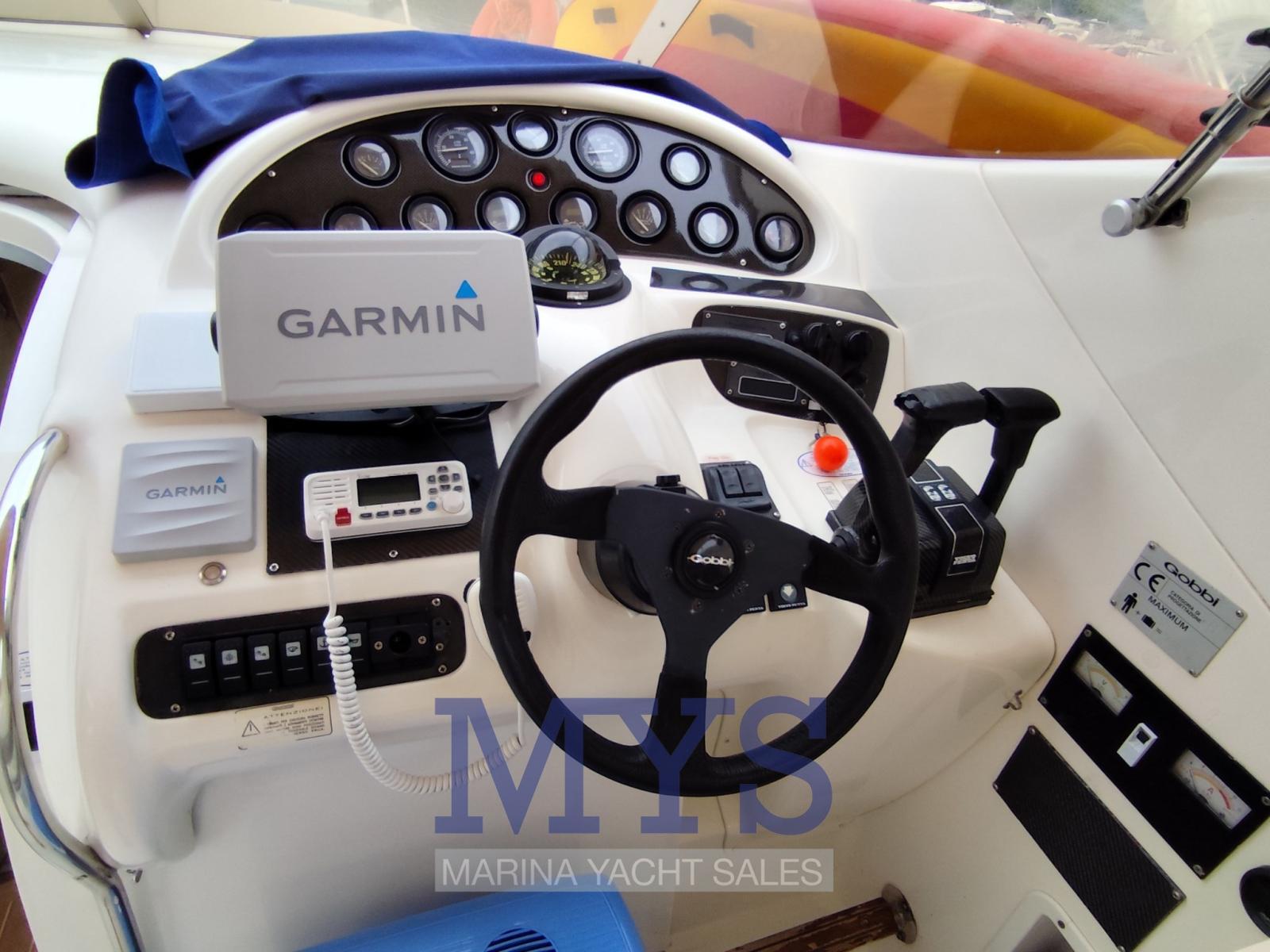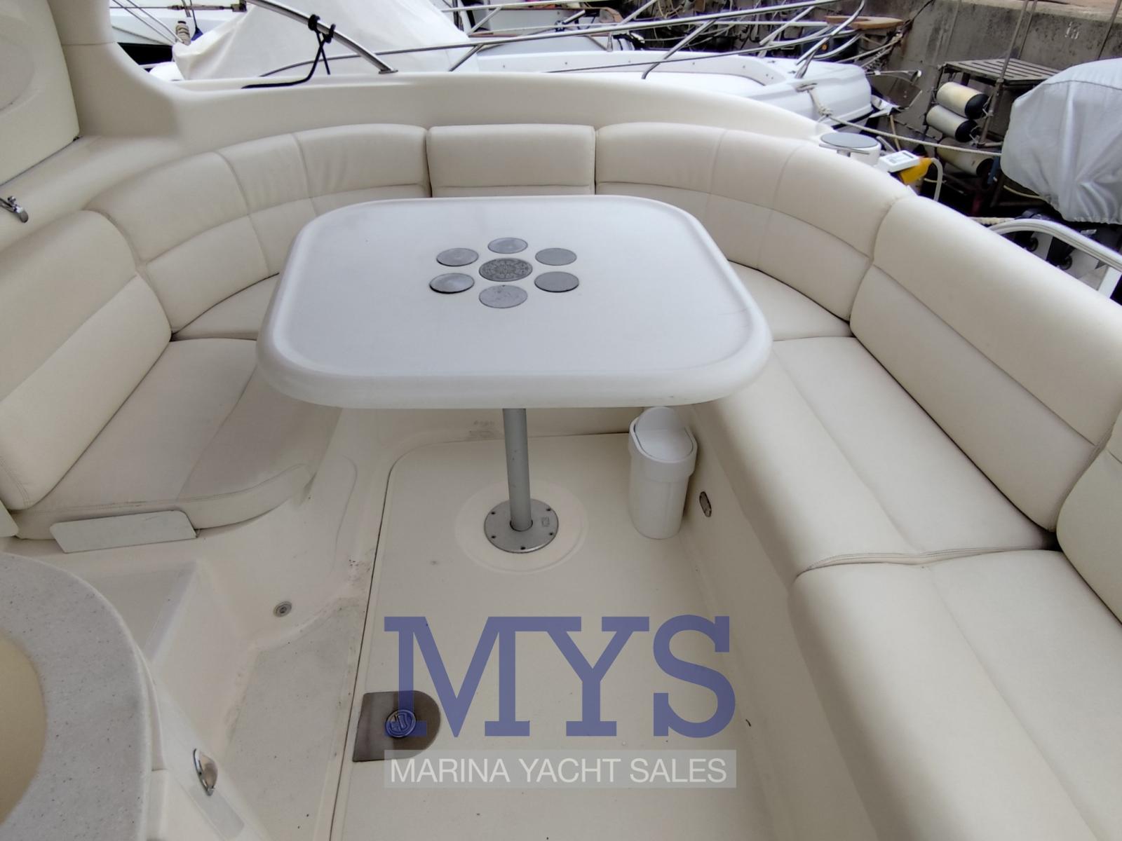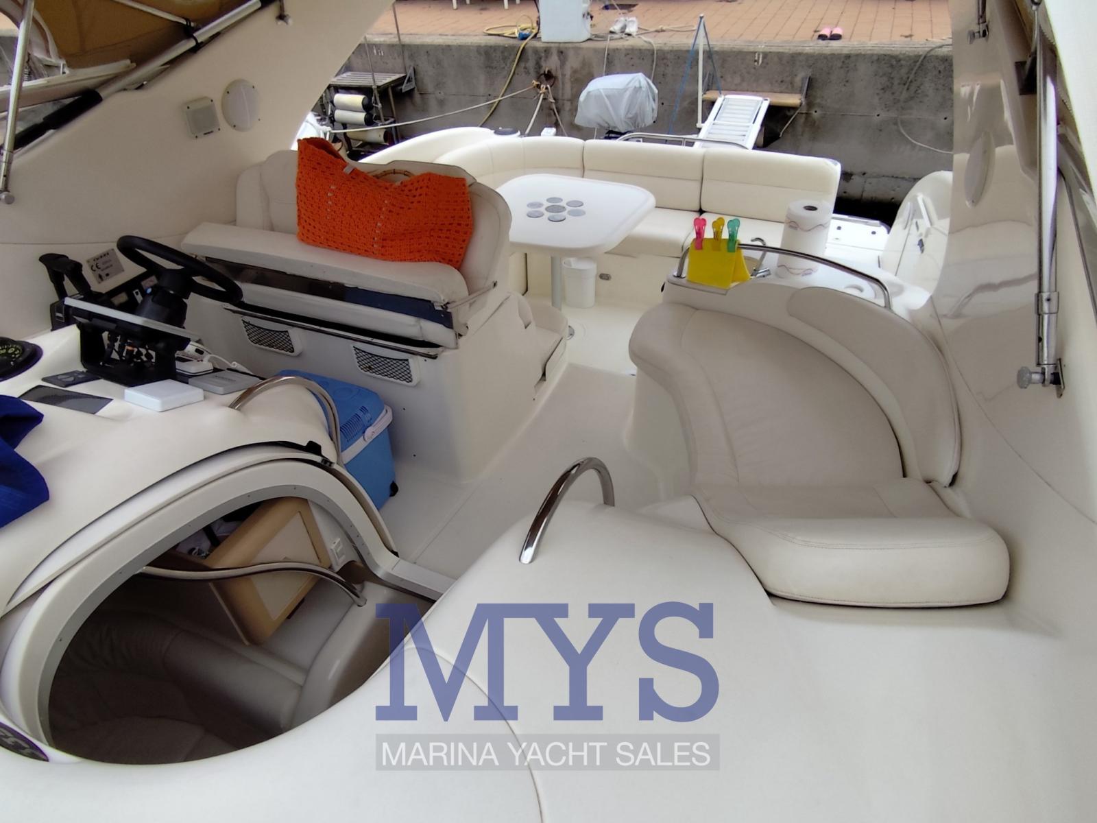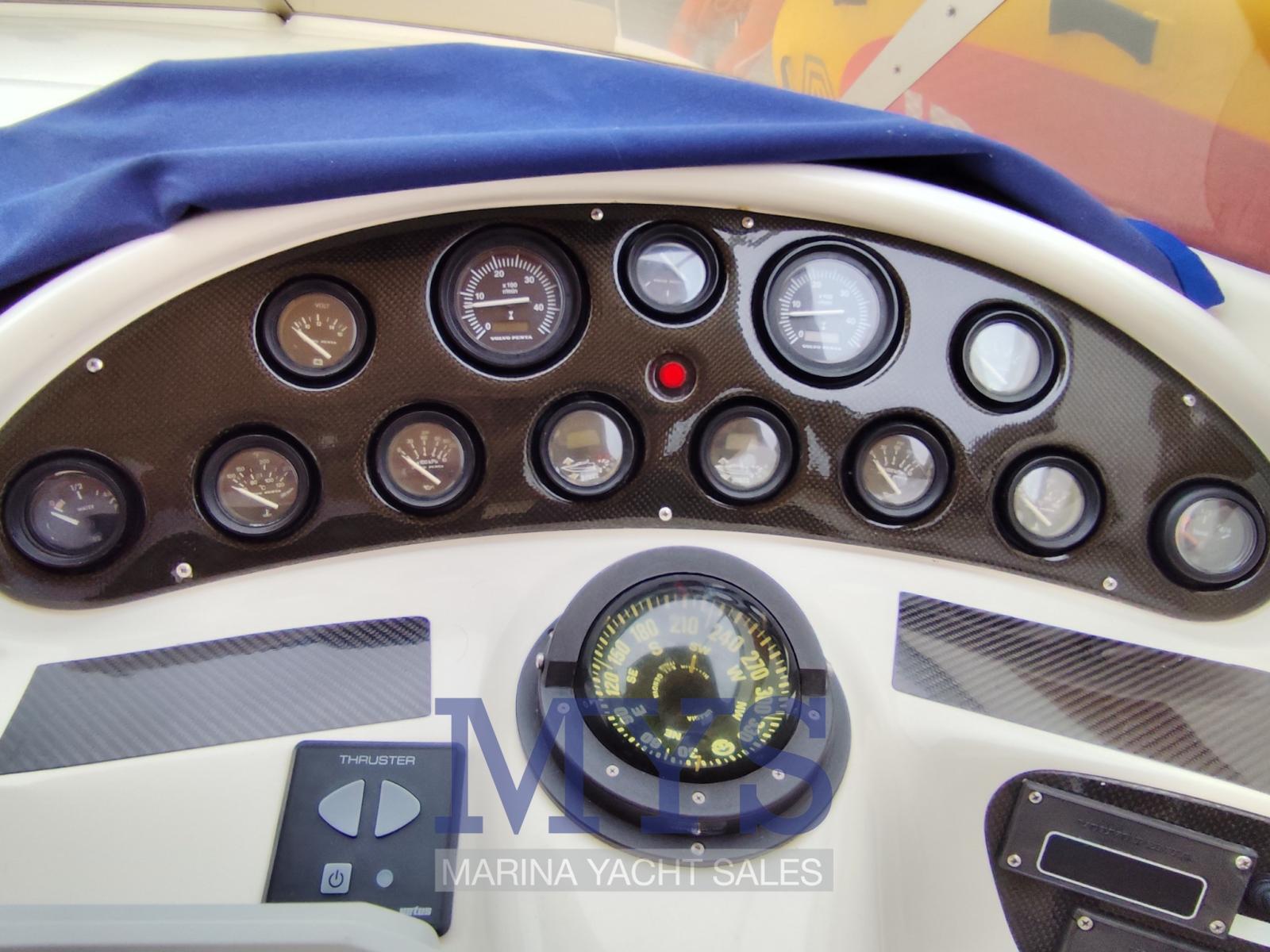Allarme motore, Autoclave, Doccia esterna, Flap idraulici, Impianto antincendio, Indicatori Flaps, Lavandino nel Pozzetto, Luci di cortesia, Luci subacquee, Passerella, Piattaforma, Pompa di sentina automatica, Presa 220V banchina, Presa acqua banchina, Rollbar, Salpa Ancore Elettrico, Scaletta da bagno, Supporto motore fuoribordo, Tavolo pozzetto, Tavolo Salone Abbattibile, Tromba, Winch tonneggio di prua.