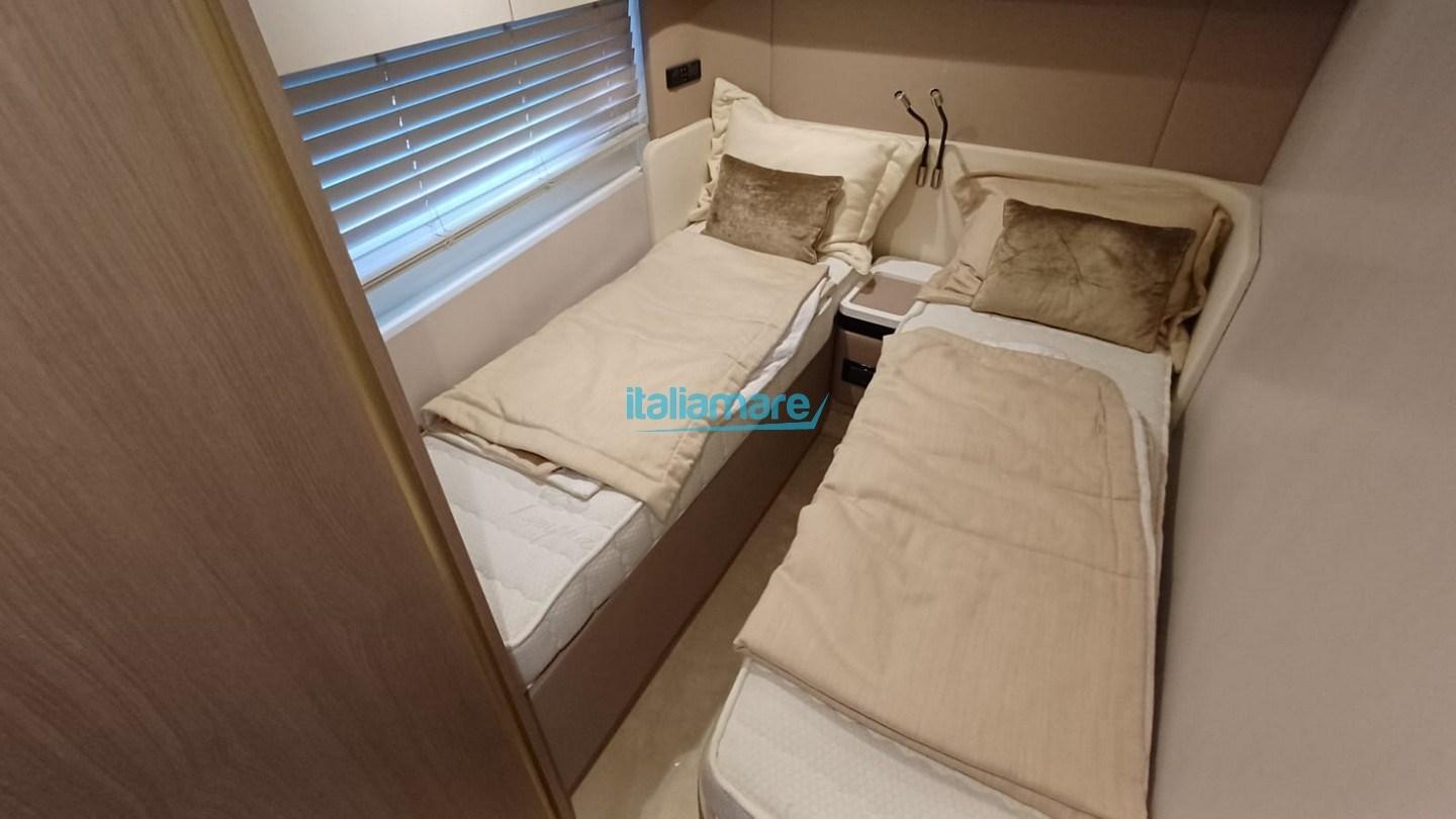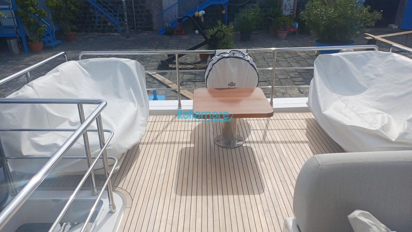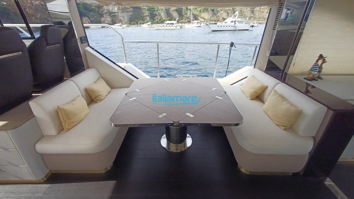 Main accessories: Air conditioning - 20kW generator - GPS - Joystick steering - Seakeeper 9 - Electric awning in the cockpit and on the flybridge - Teak on the flybridge - Teak side decks - Gangway - 2 TVs