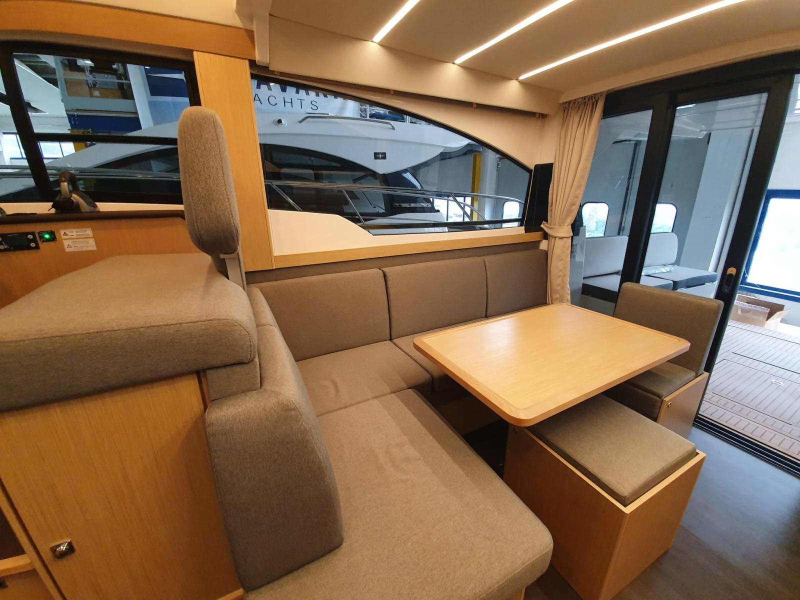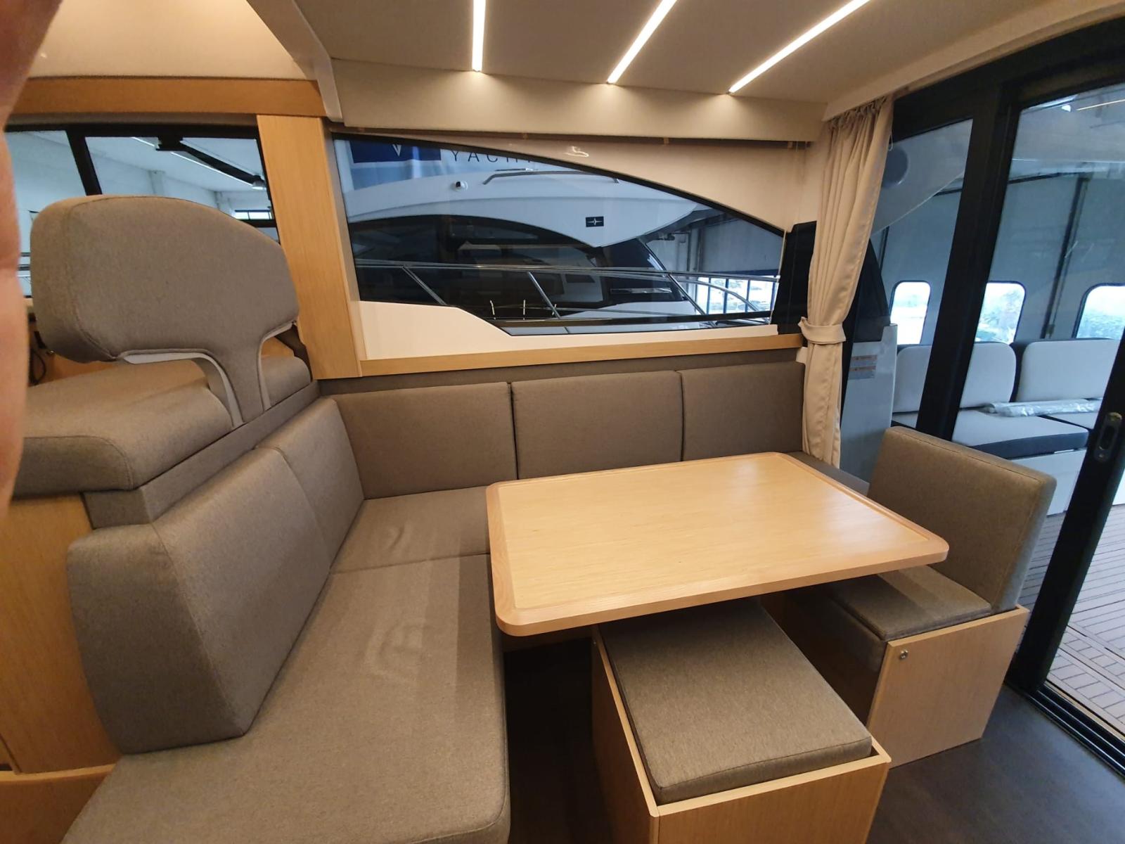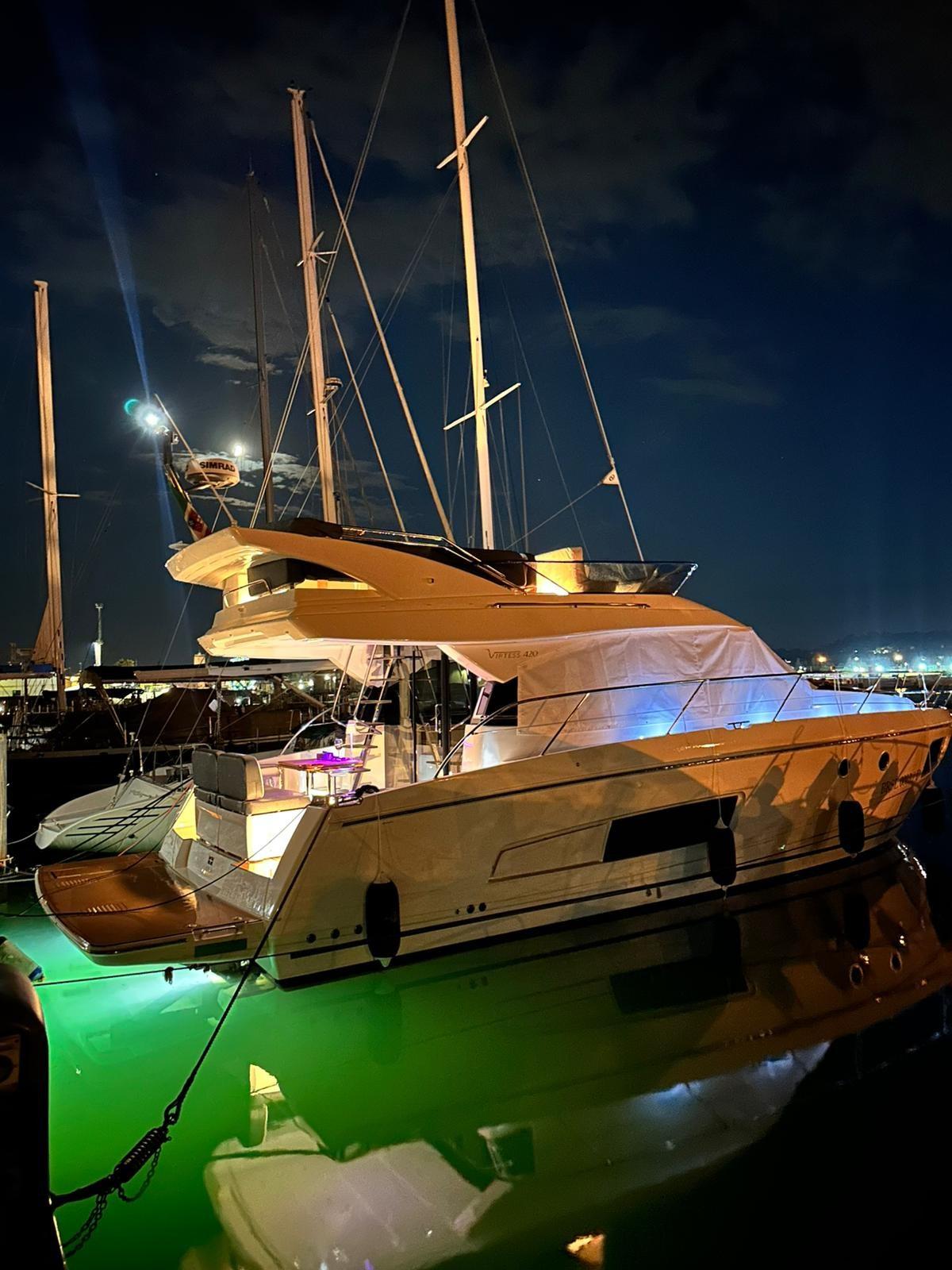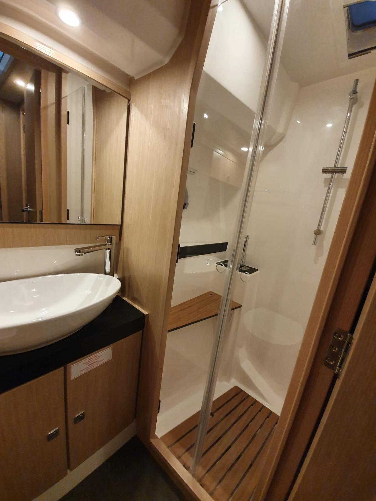 Allarme motore, Autoclave, Doccia esterna, Flap elettrici, Lavandino nel Pozzetto, Luci di cortesia, Luci subacquee, Piattaforma (Idraulica), Porta ingresso, Pozzetto Teak (Teak sintetico), Presa 220V banchina, Presa acqua banchina, Salpa Ancore Elettrico, Scaletta da bagno, Tavolo pozzetto (Movibile), Tavolo Salone Abbattibile, Tromba.