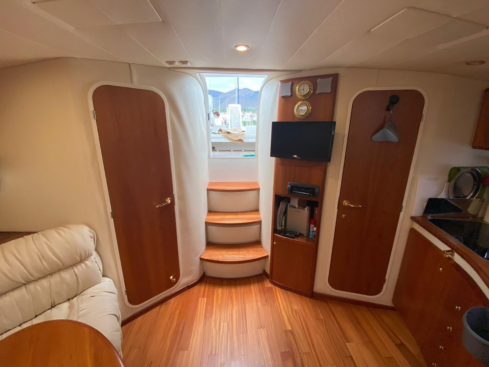 Allarme motore, Autoclave, 4 Batterie, Doccia esterna, Faro orientabile, Flap elettrici, 6 Parabordi, Passerella (Besenzoni), Piattaforma, Raddrizzatore, Rollbar, Salpa Ancore Elettrico, Scaletta da bagno, Tavolo pozzetto (elettrico).
