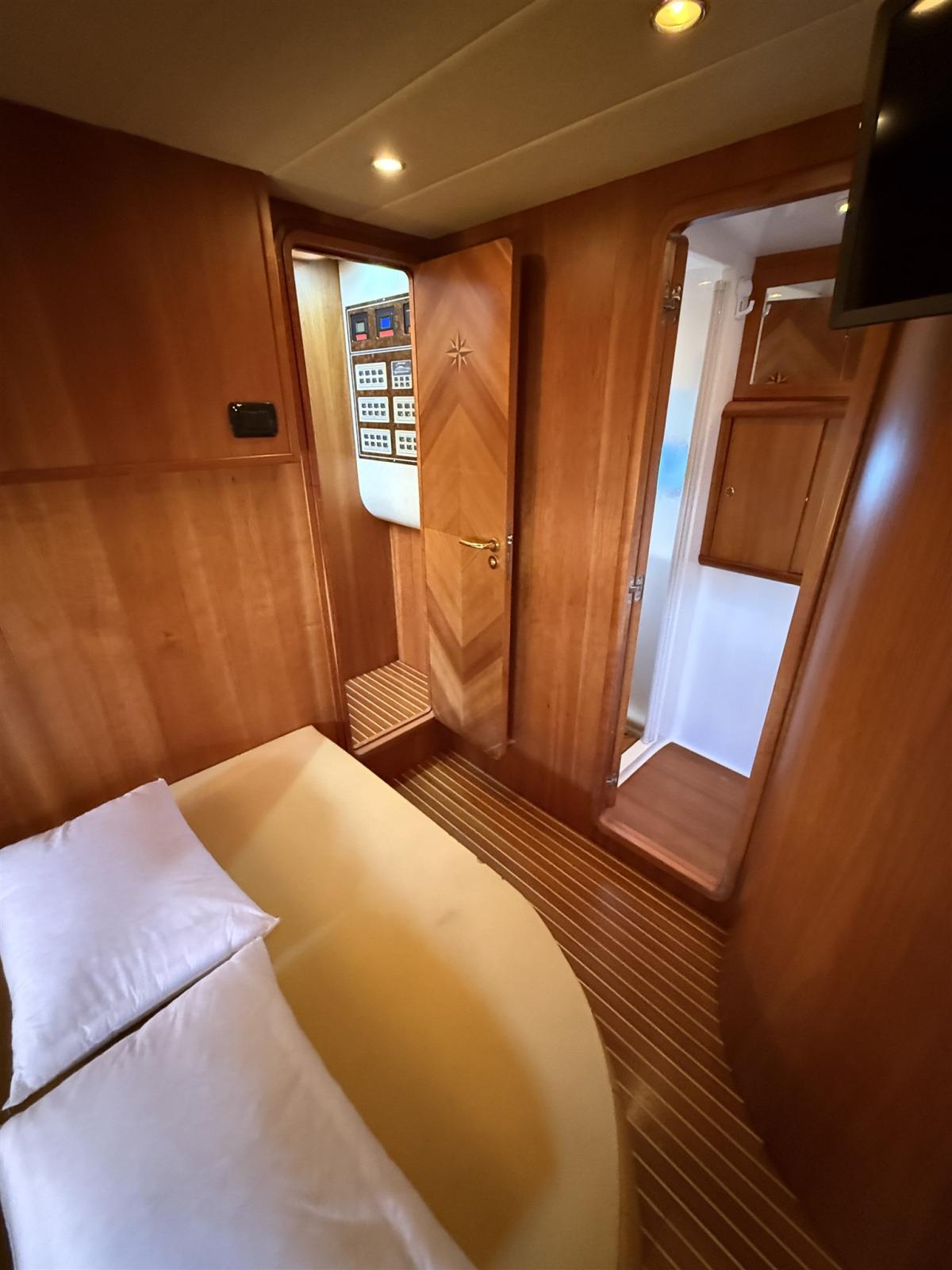 N. 4 CABINE (N. 2 CABINE MATRIMONIALI + N. 2 CABINE OSPITI OGNUNA CON 2 LETTI IN PIANO) + 3 BAGNI + CABINA MARINAIO