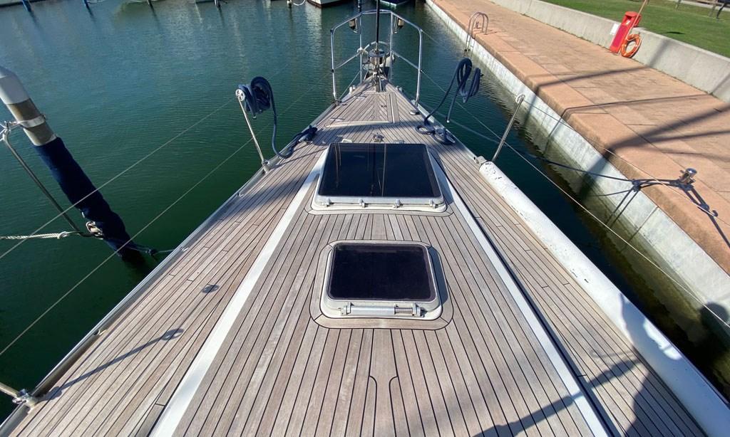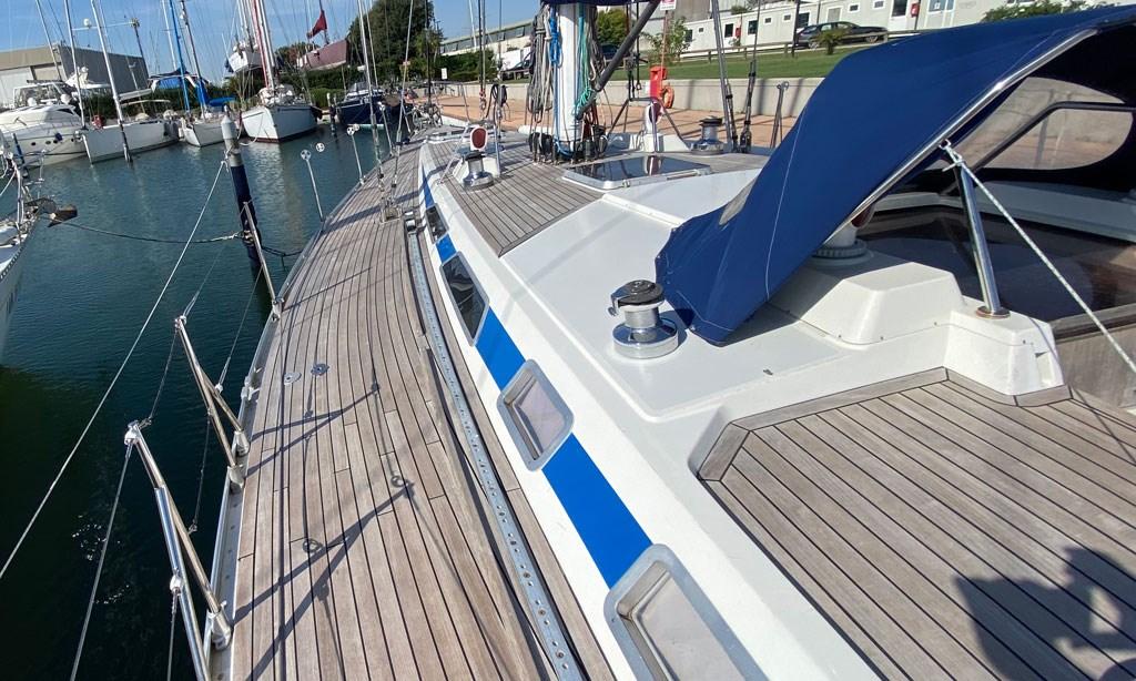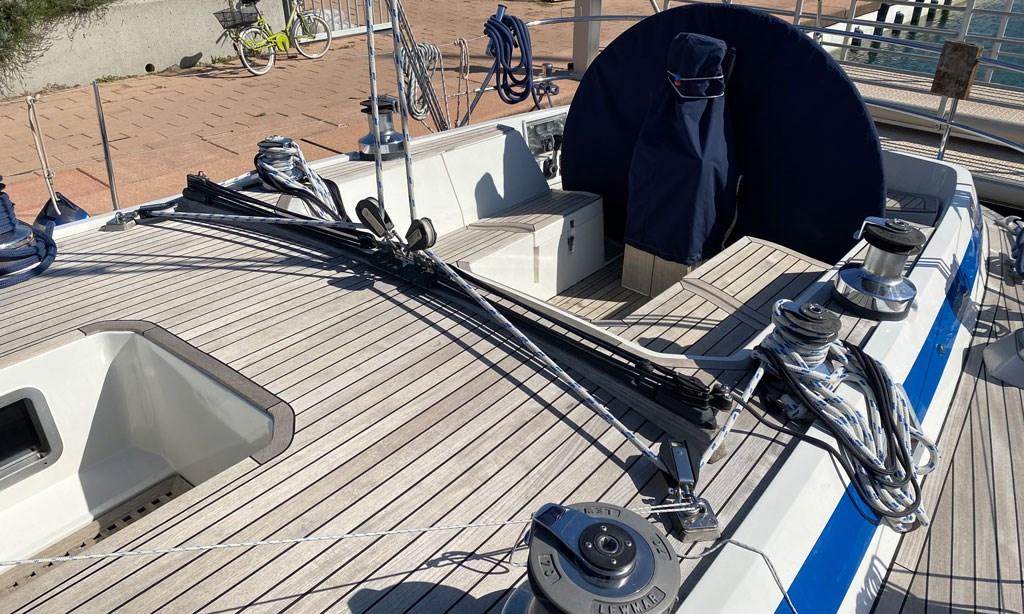 Nel 2022 poi è stato eseguito un importante refitting: rifacimento completo del teak della coperta, verniciatura completa della tuga comprese le fasce laterali e la poppa, sostituzione totale della falchetta. 2025 Sabbiatura completa opera viva, appl 5 mani ciclo epoxy e 2 mani antivegetativa. Rimozione controllo pala timone e sostituzione baderna di tenuta.