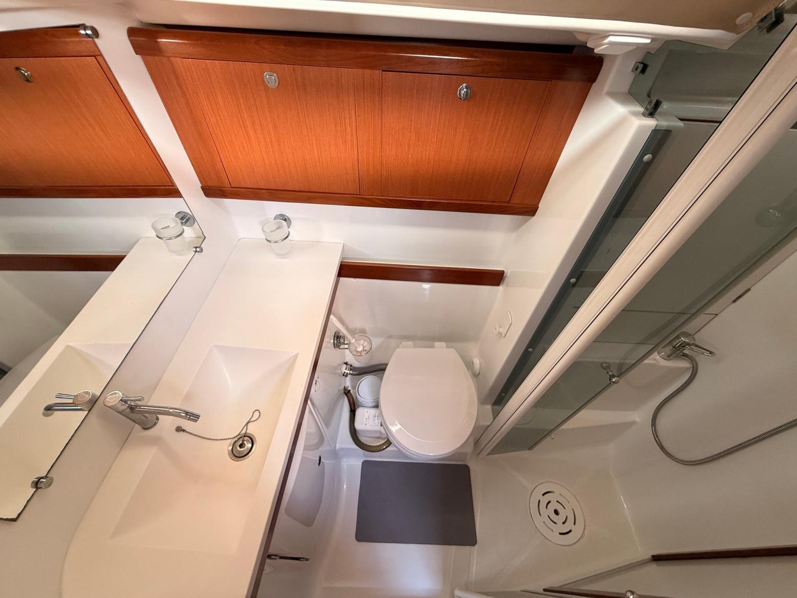 Acqua Calda, Prese interne 12v, Prese interne 220v, Riscaldamento (WEBASTO), Serbatoio Acque Nere, WC marino elettrico.