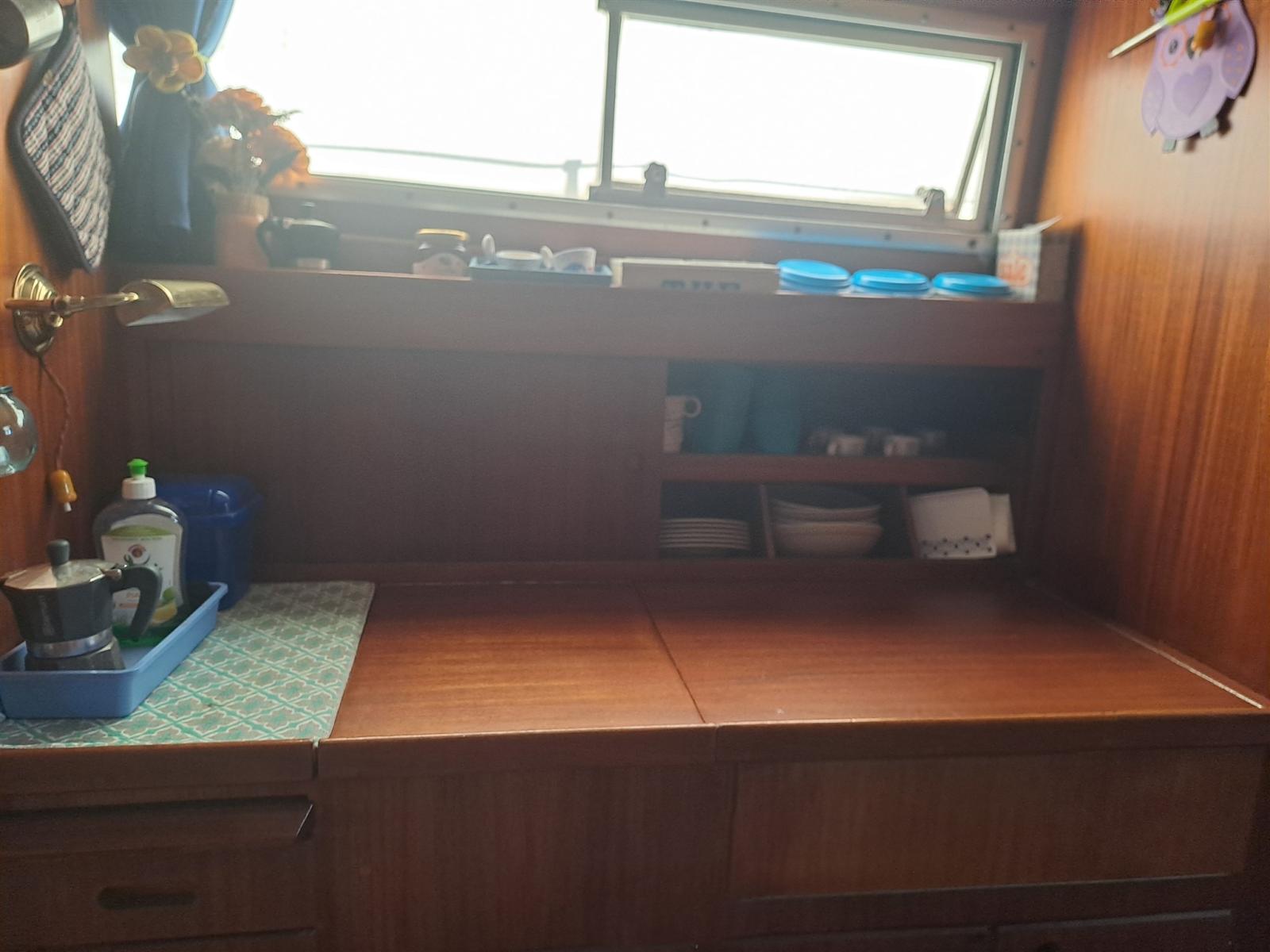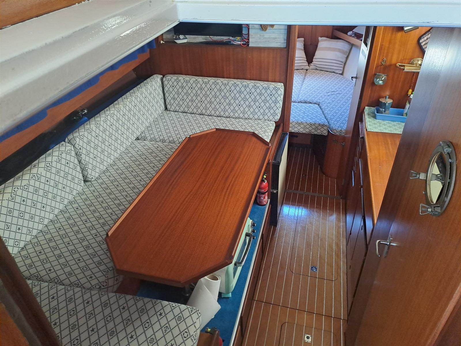 L'imbarcazione è strutturata con doppia cabina doppia, due dinette interna ed esterna, WC elettrico, doppio lavandino, uno in WC l'altro in cabina di poppa, doccia interna con acqua calda e doccetta esterna, doppia zona prendisole, una a prua ed una a poppa, con cuscineria in materiale impermeabile, frigo, cucina a tre fuochi con bombola esterna, cuscineria dinette e materassi cabine in ottime condizioni. 6 posti letto