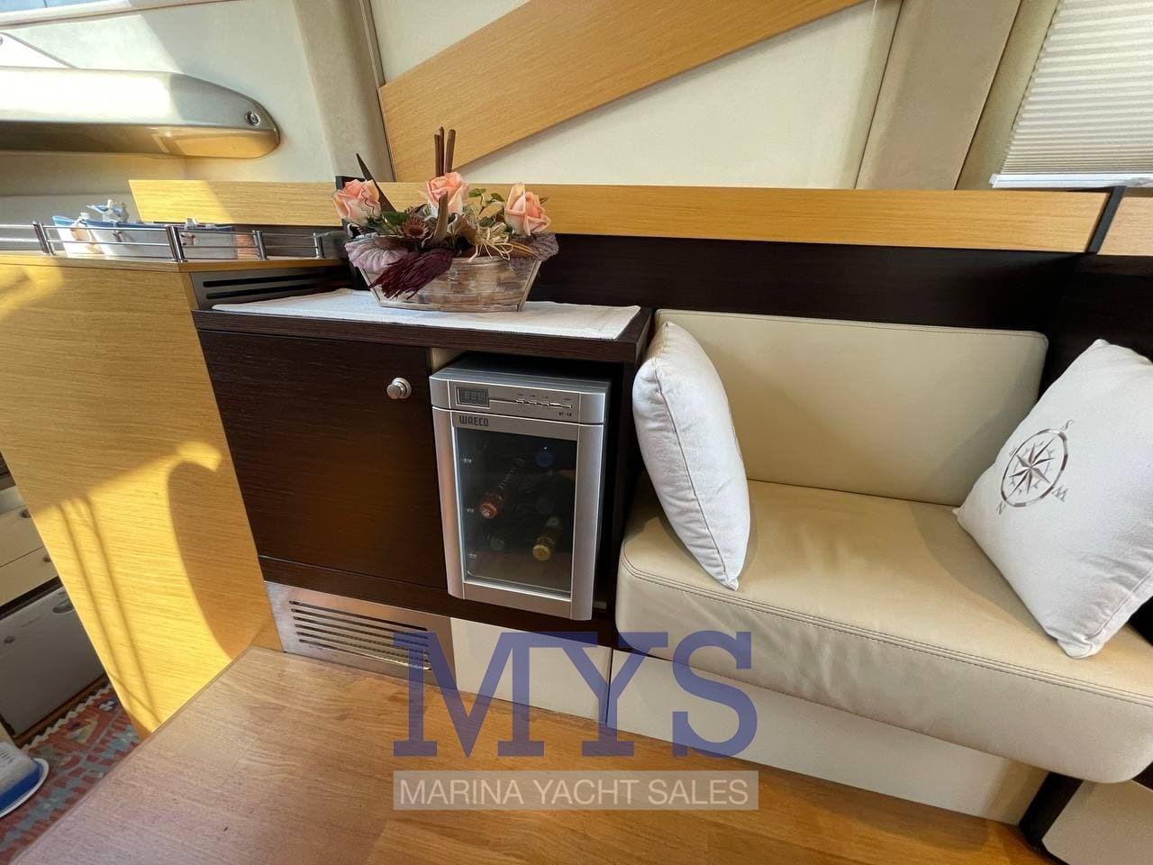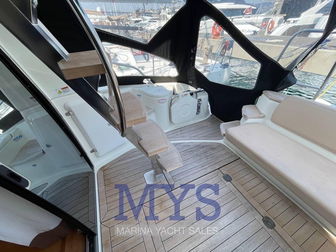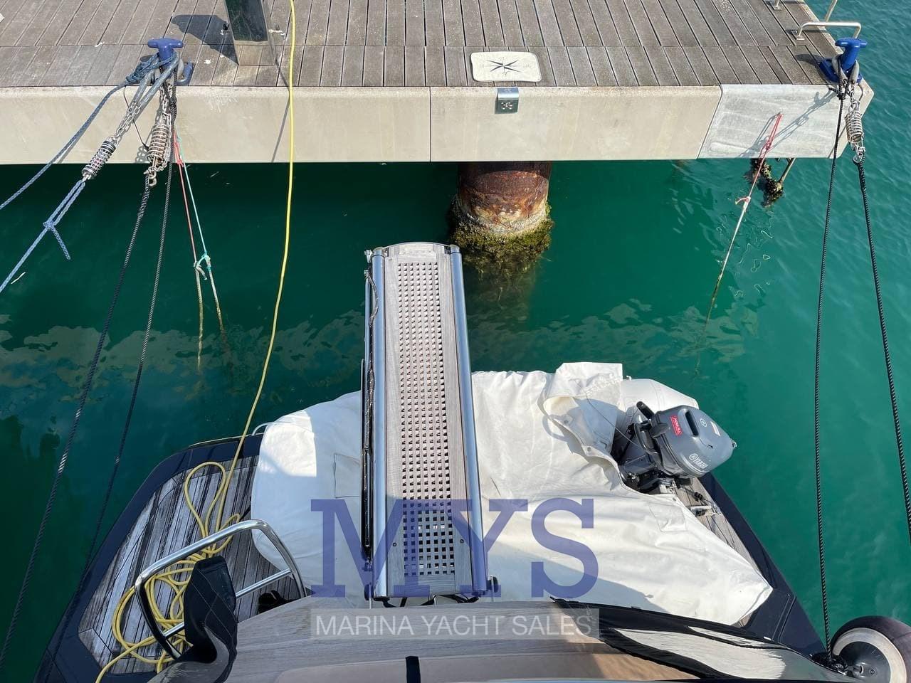 Allarme motore, Allarme sentina, Autoclave, Colorazione speciale (Fascia e plancetta nere), Doccia esterna, Flap idraulici, Lavaggio catena, Luci di cortesia, Passerella (idraulica telescopica Besenzoni), Piattaforma (fissa in teak), Pompa di sentina automatica, Pompa di sentina manuale, Porta ingresso, Pozzetto Teak, Presa 220V banchina, Presa acqua banchina, Ripetitore strumentazione, Salpa Ancore Elettrico, Scaletta da bagno, Tavolo pozzetto (nel fly), Tromba, Winch tonneggio di prua.