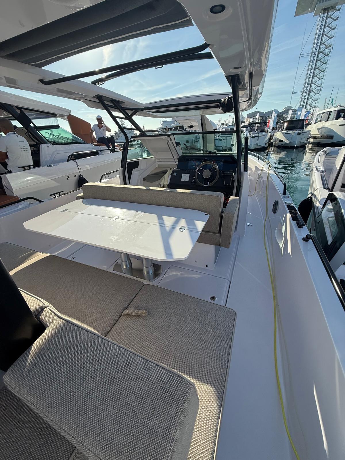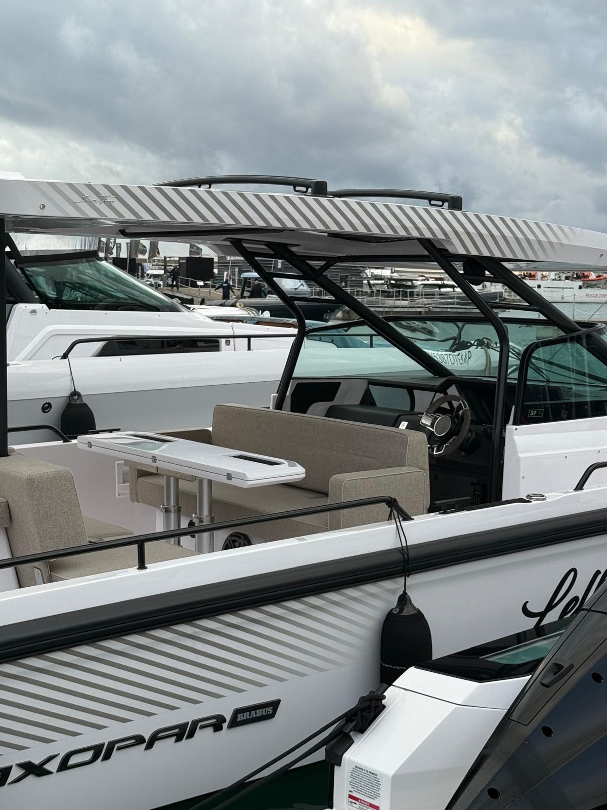 Axopar 37 Sun Top con solo una stagione all'attivo, motorizzazione massima con coppia di mercury 400 hp (Brabus Performance Line), Mediterrana Edition, doppia cabina e molto altro.