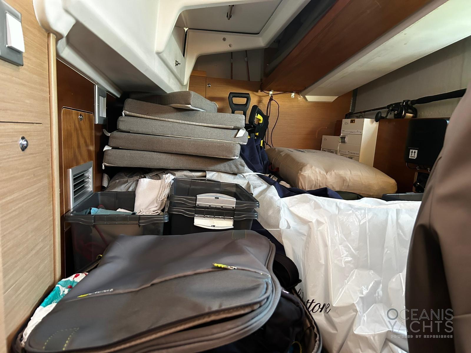 Attrezzatura per Spi, Manovre spi asimmetrico/code 0, Winch di tuga a dritta, Maniglia verricello supplementare, Windex 15, Albero avvolgiranda, Vela Code 0 con avvolgitore, Kit ancoraggio ancora delta 20 kg 32 m catena 50 m. del 10 e cima da 60 m, Sprayhood alta trasparenza con luci a led graphite, Coperture timoni graphite, Copertura tavolo pozzetto graphite, Bimini con piastra di collegamento allo sprayhood graphite, Meccanismo elettrico plancetta di poppa con 2 telecomandi, Cuscini pozzetto carbon beige, 2 Ruote timone in composito nere, Elica di prua retrattile, Presa acqua dolce banchina, Forno microonde, Aria condizionata (24000 BTU) 2*12000 a 2 zone, Rete a doghe nella cabina armatoriale, Tavolo quadrato con alette pieghevoli Luxe, Elica tripale abbattibili flexofold, Wc elettrico di prua, Pannello fotovoltaico con rele di carica, Fondo pozzetto teak, Ricevitore e trasmettitore AIS Licenza VHF e num. MMSI