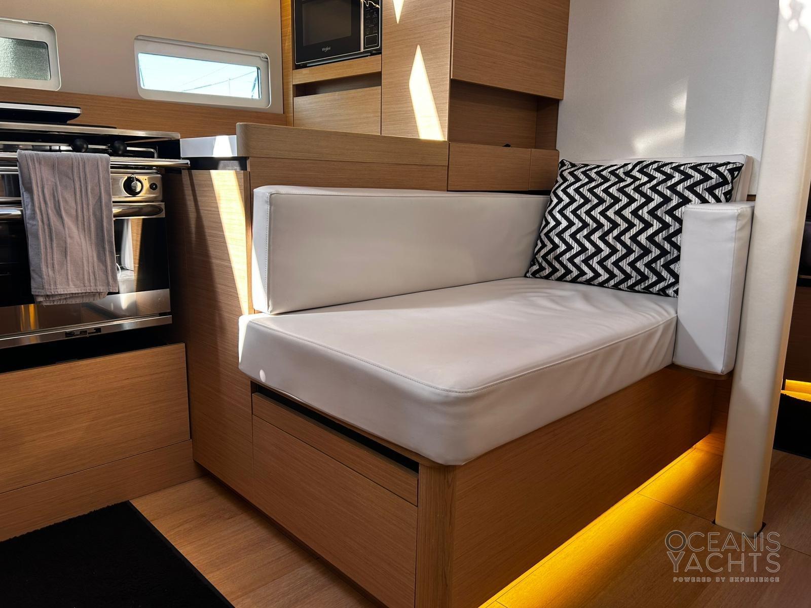 Bompresso con passacatena per ancora, Secondo comando verricello e contacatena ancora in pozzetto,Tavolo pozzetto con alette in GPR, Draglie con apertura laterale, linea di banchina 220, Prese usb e 220 nelle cabine, Monitoraggio navicolor, Monitoraggio Batterie, Fornello a due fuochi e forno luxe con grill, Batterie supplementari caricabatterie 60Ah 4 batterie da 125 Ah, 2 sacche porta drizze nel pozzetto, Illuminazione indiretta a led, Applique d’atmosfera con abat-jour, Cockpit(pozzetto pilotaggio) illuminazione indiretta, Porta verticale frigo, Pareti con rivestimento imbottito, Portabottiglie sotto il pagliolo, Orologio e barometro al tavolo da carteggio, Tende veneziana finestrate laterali ed oblò nel quadrato