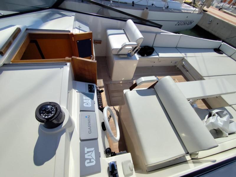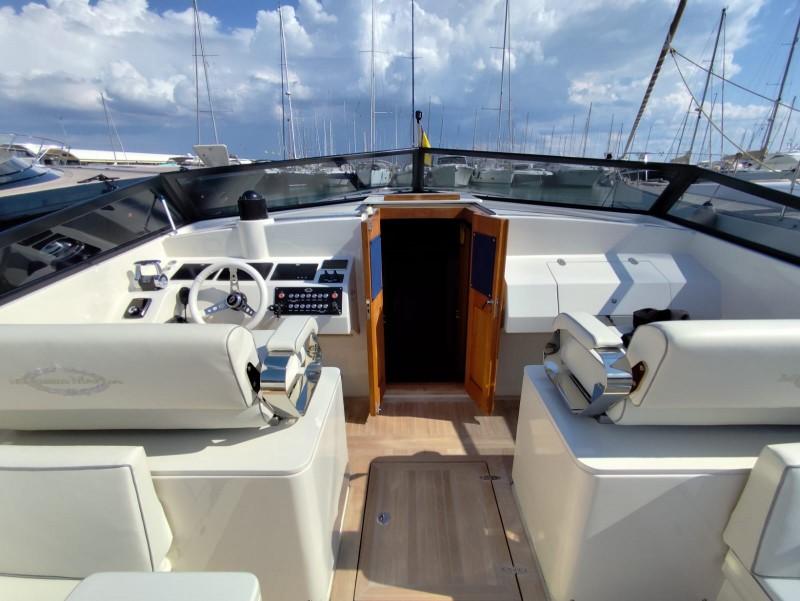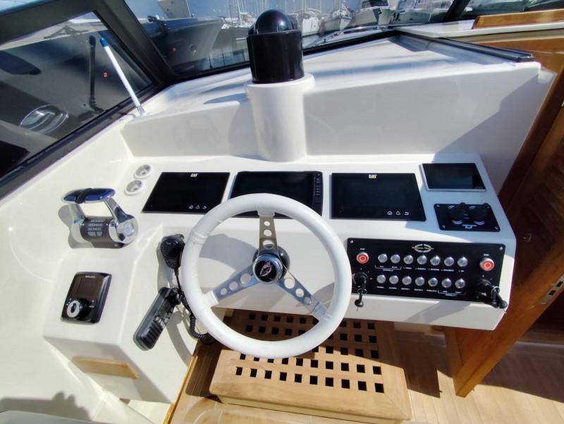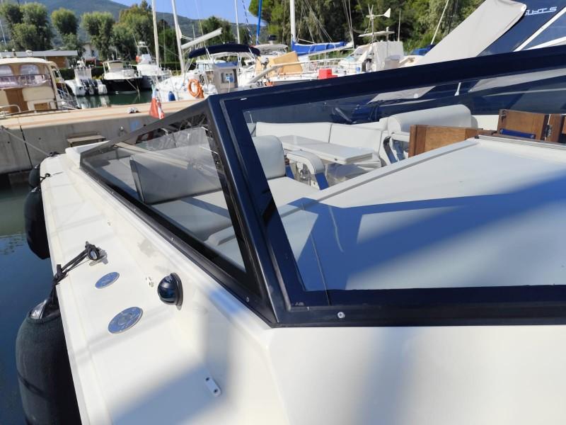 Il MAGNUM 38 è stato sottoposto a un rigoroso refit generale nel 2022, che ha incluso: riallestimento completo dello scafo e verniciatura di scafo e sovrastruttura con vernice Dupont, sostituzione dei motori, dei relativi scarichi e di tutte le prese a mare, rimozione della linea d’asse e installazione di un sistema di trasmissione Top System, nuovo impianto elettrico (luci, verricello, cucina, pompe, frigorifero, bagni), nuove tappezzerie interne/esterne, nuova strumentazione, costruzione ex novo del mobilio interno ed esterno, nuova spiaggetta di poppa, nuova scala per il bagno, sostituzione di tutte le tubazioni e dei pali in carbonio dei tendalini, sostituzione di tutte le guarnizioni, ricromatura di tutte le parti in acciaio, nuovo stereo. Il MAGNUM 38 è ben equipaggiato, con: generatore, climatizzatore, GPS esterno con cartografia, autopilota, spiaggetta di poppa, piano cottura a induzione, doppio frigorifero interno/esterno, bagno con WC elettrico, antenna satellitare, TV in dinette e impianto Hi-Fi, tendalino parasole e copertura totale del pozzetto. Condizioni impeccabili. - Entra in MediaShip.it e consulta le Schede descrittive, con oltre 6.000 tra Immagini e Video, potrai prenotare la tua Video Visita a bordo, acquistare e vendere il tuo Posto Barca e riservare le migliori imbarcazioni e Location per le tue vacanze in barca.