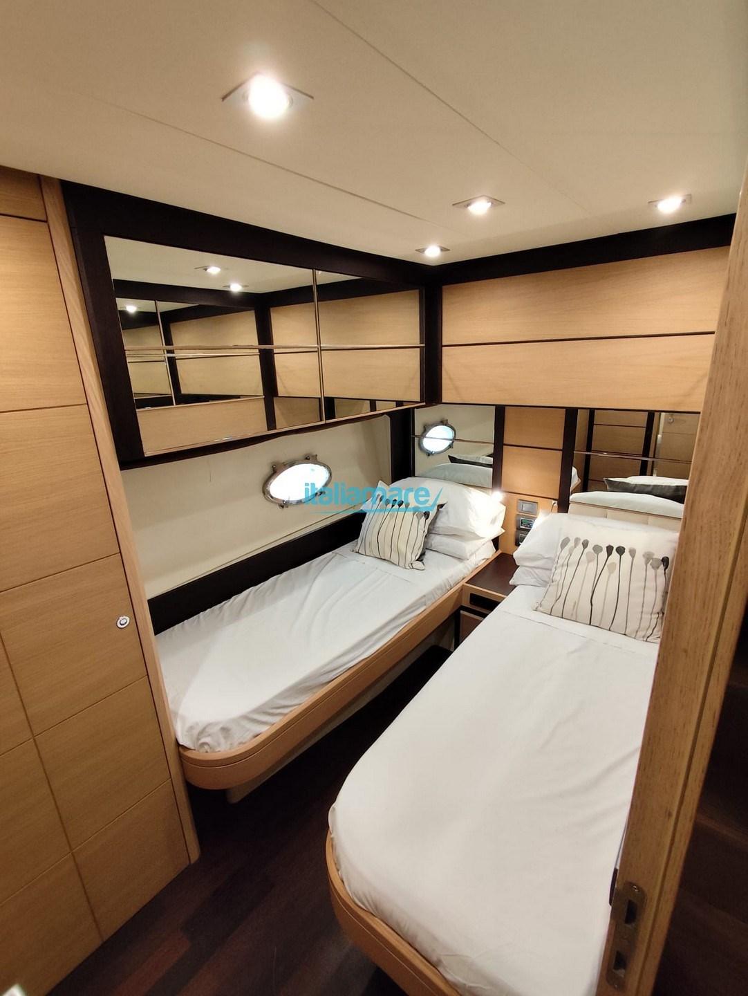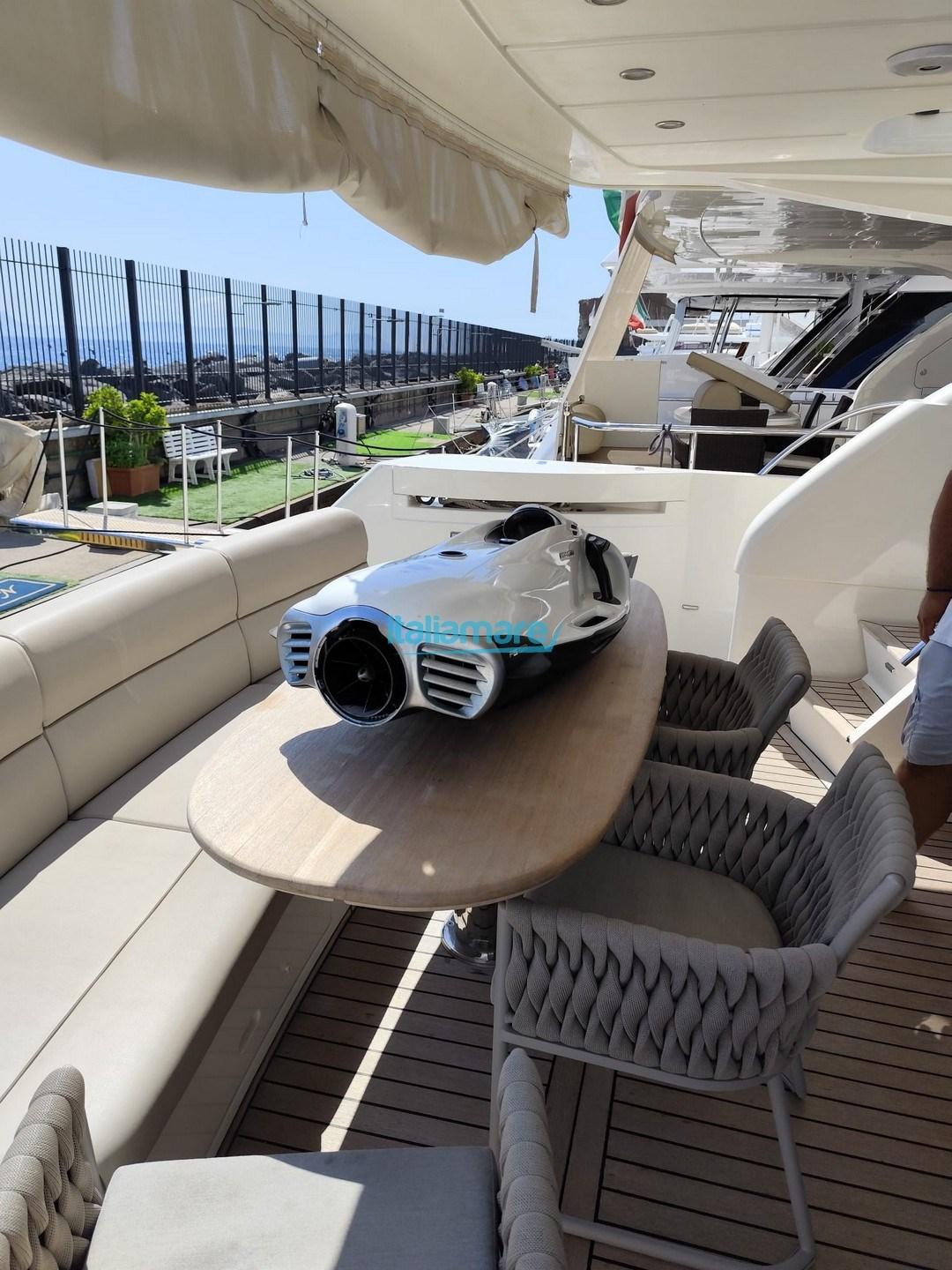 Accessori principali: Aria condizionata - GPS - Pilota automatico - Elica di poppa e di prua - Passerella - Piattaforma in teak - Teak in pozzetto - Inverter - Stereo - Impianto Tv - TV
