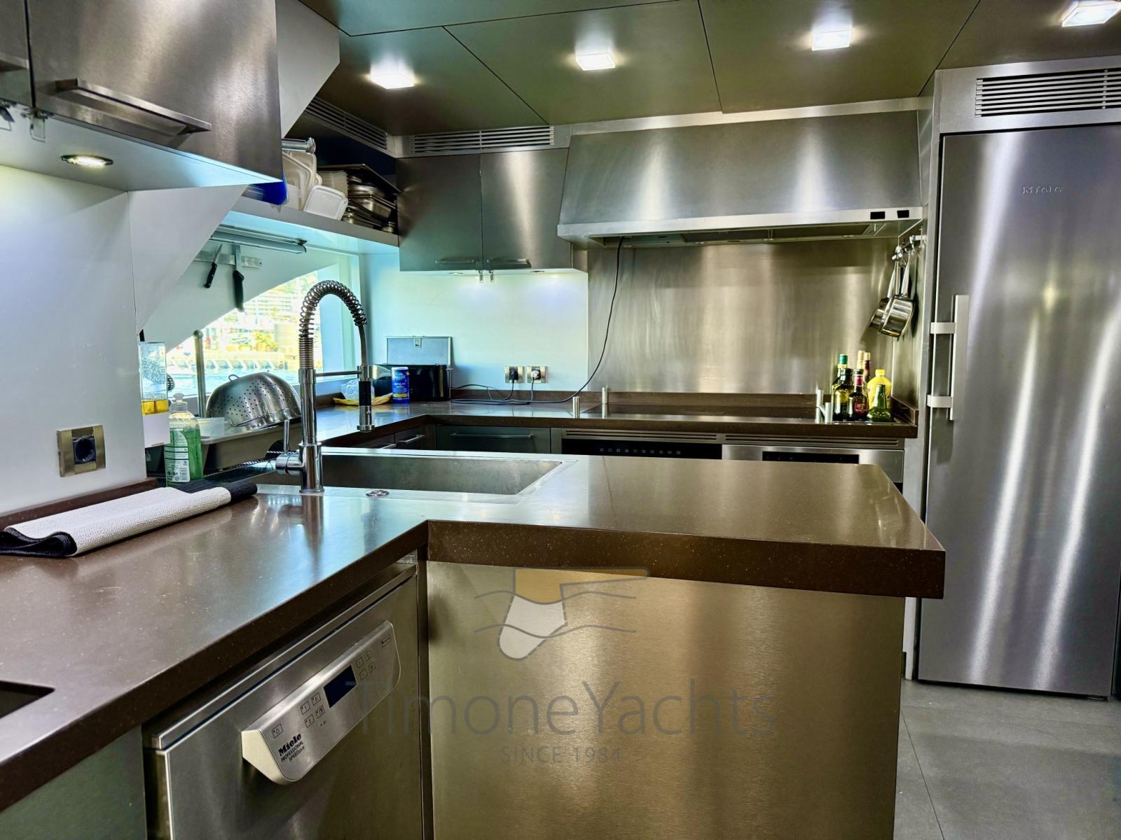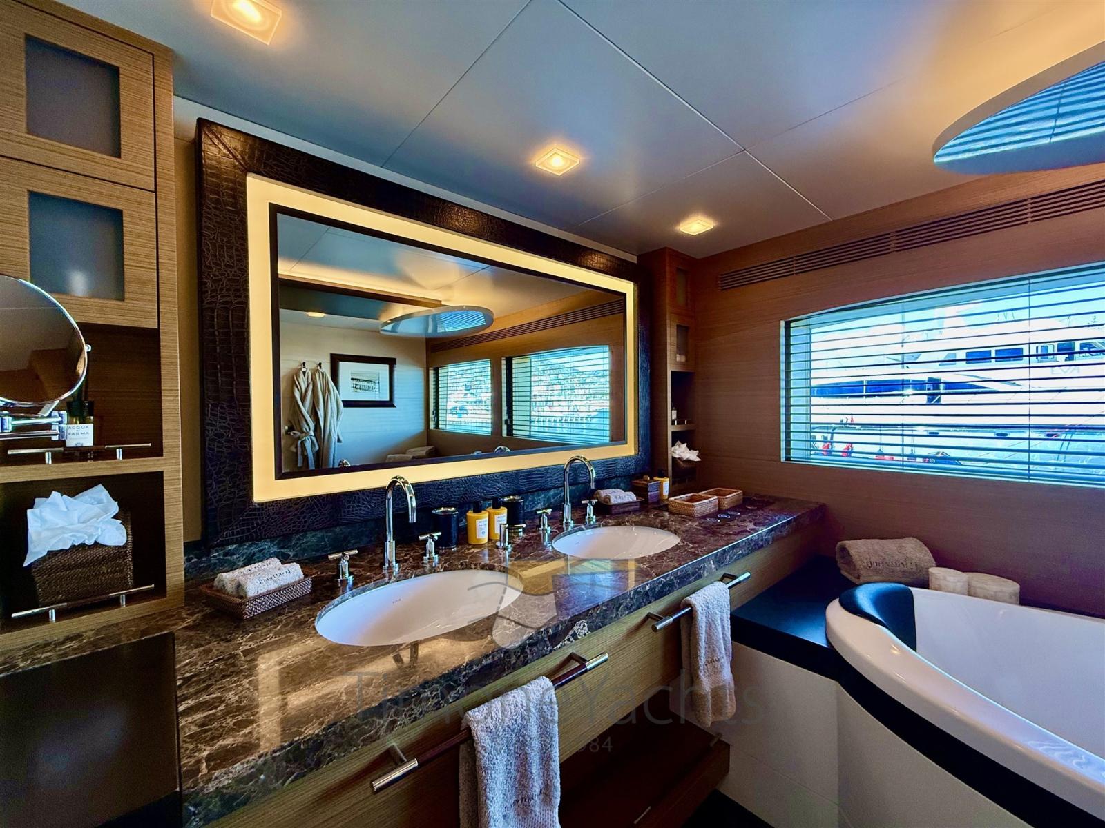 Allarme fumo/gas, Allarme motore, Allarme sentina, Alternatore, Autoclave, Camminamenti laterali in teak, Colorazione speciale, Doccia esterna, Flap idraulici, Garage per tender, Hard top, Indicatori Flaps, Lavaggio catena, Lavandino nel Pozzetto, Luci di cortesia, Luci subacquee, Passerella, Piattaforma, Ponte in teak, Porta ingresso, Porta laterale, Pozzetto Teak, Presa 220V banchina, Presa acqua banchina, Scaletta da bagno, Stabilizzatori (Seakeeper), Tavolo pozzetto, Tender, Tromba, Winch tonneggio di poppa, Winch tonneggio di prua.