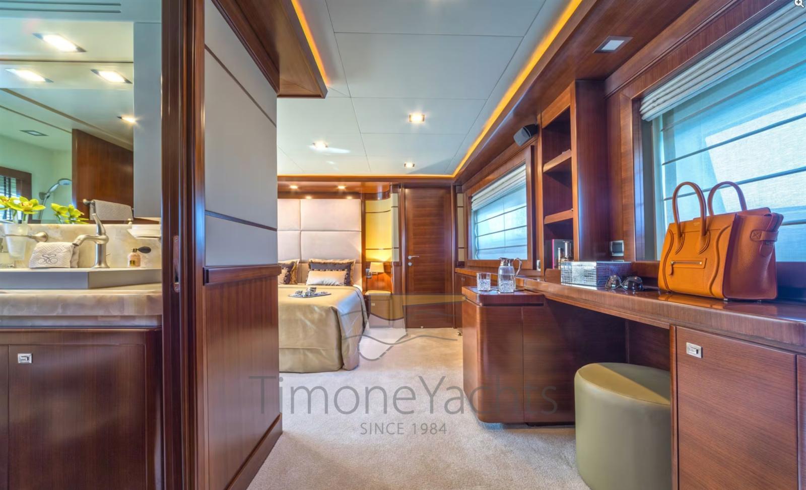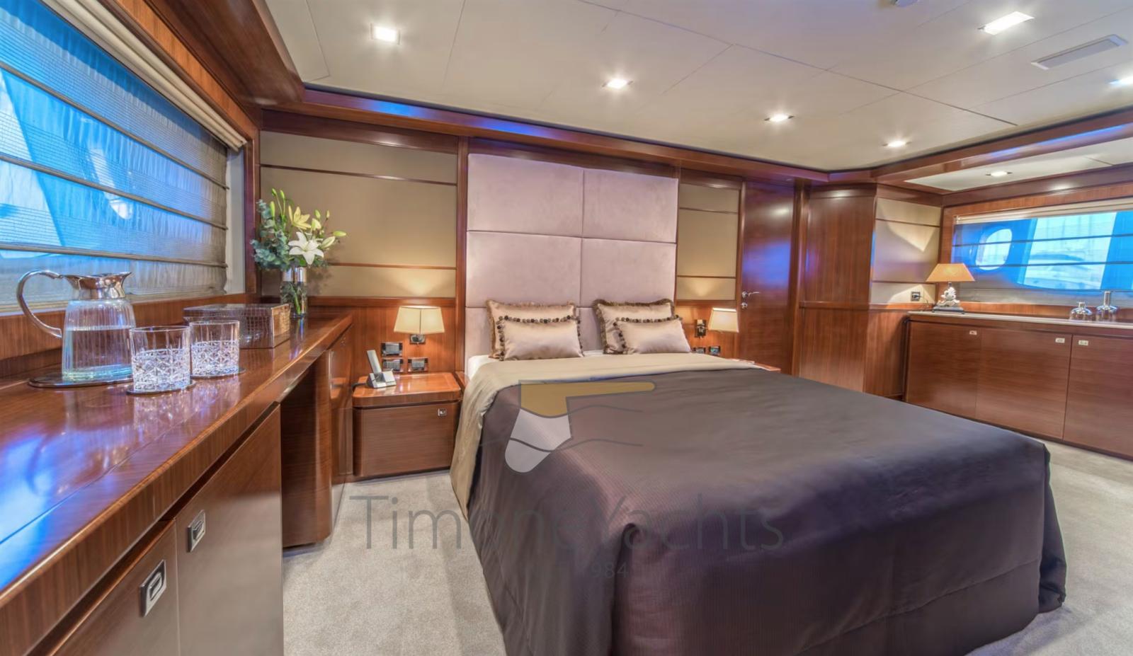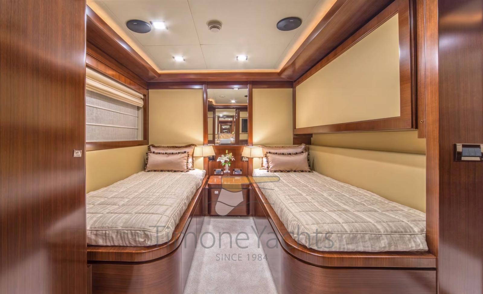 Offre alloggio per un massimo di 12 ospiti con un layout che comprende una suite armatoriale, una cabina VIP, una cabina matrimoniale e due cabine doppie. Ci sono 11 posti letto in totale, di cui 2 matrimoniali, 1 matrimoniale, 6 singoli e 2 pullman. Può inoltre ospitare a bordo fino a 6 membri dell'equipaggio.