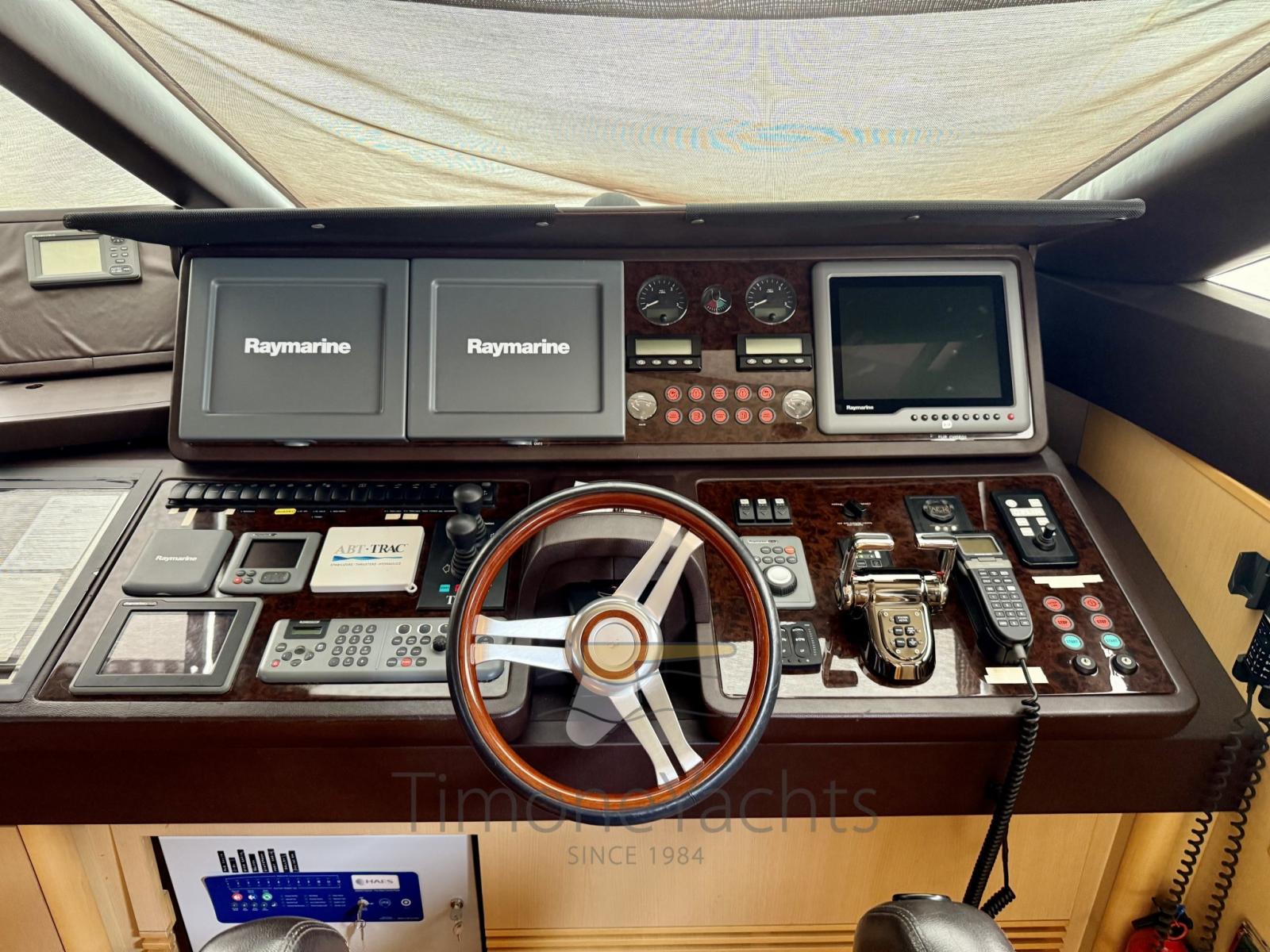 AIS, Angolo barra, Antenna radar, 3 Comando motori elettronico, 2 Computer di bordo, Contametri catena, Contamiglia (Dual station), Display, DSC vhf, Ecoscandaglio (Dual station \ Raymarine), 2 GPS (Raymarine), Pilota automatico (Raymarine ST70+), Plotter (Raymarine), Plotter con antenna GPS, Radar (Dual station \ Raymarine), Radio VHF (Raymarine).