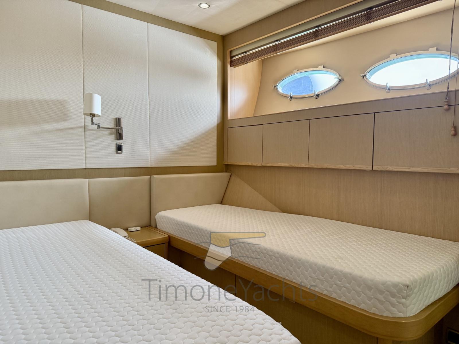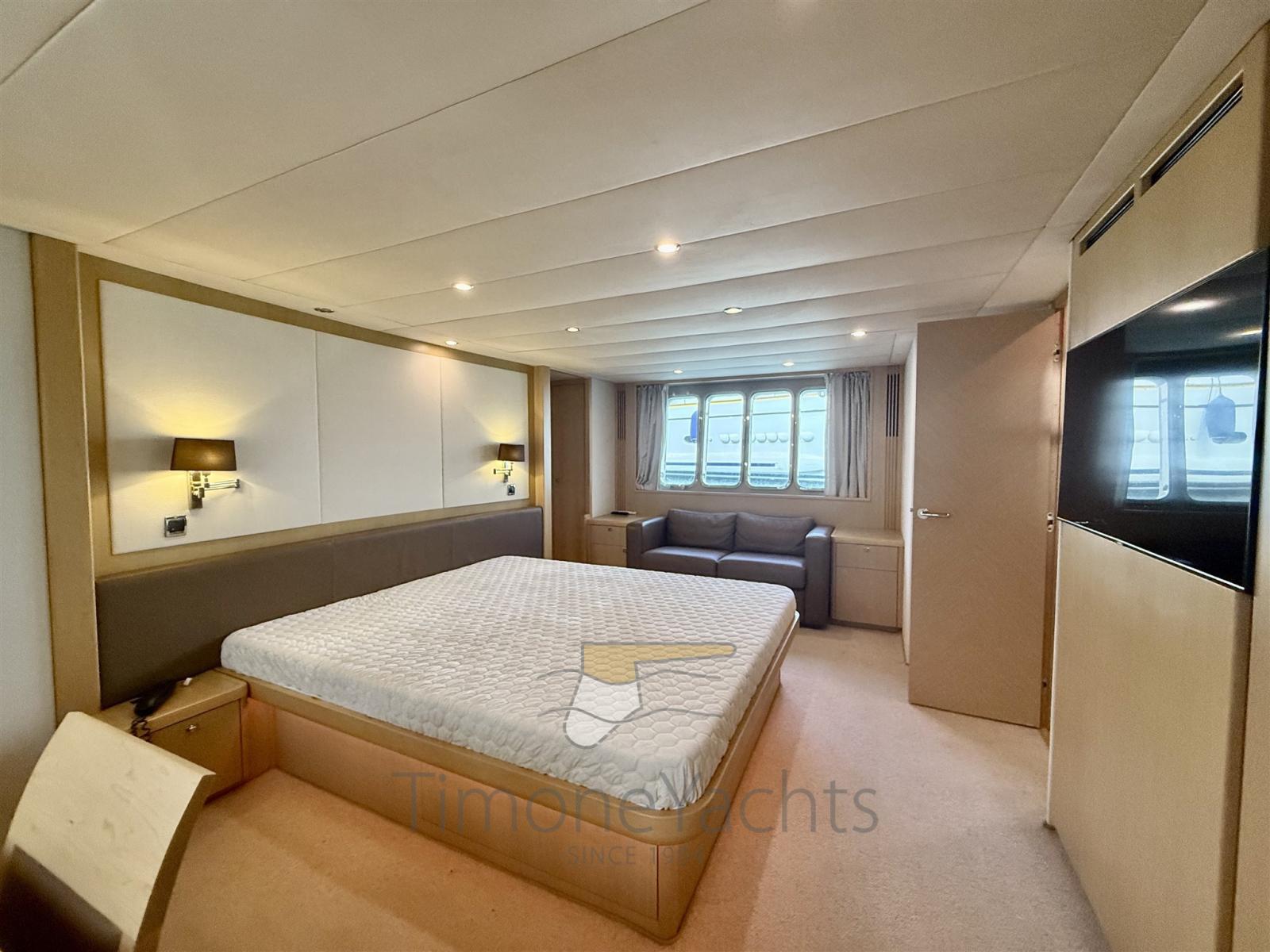 4 cabine ospiti tutte con bagno en suite, bagno giorno al ponte principale e 4 voluminosi alloggi crew in due cabine. Davvero enorme il fly.