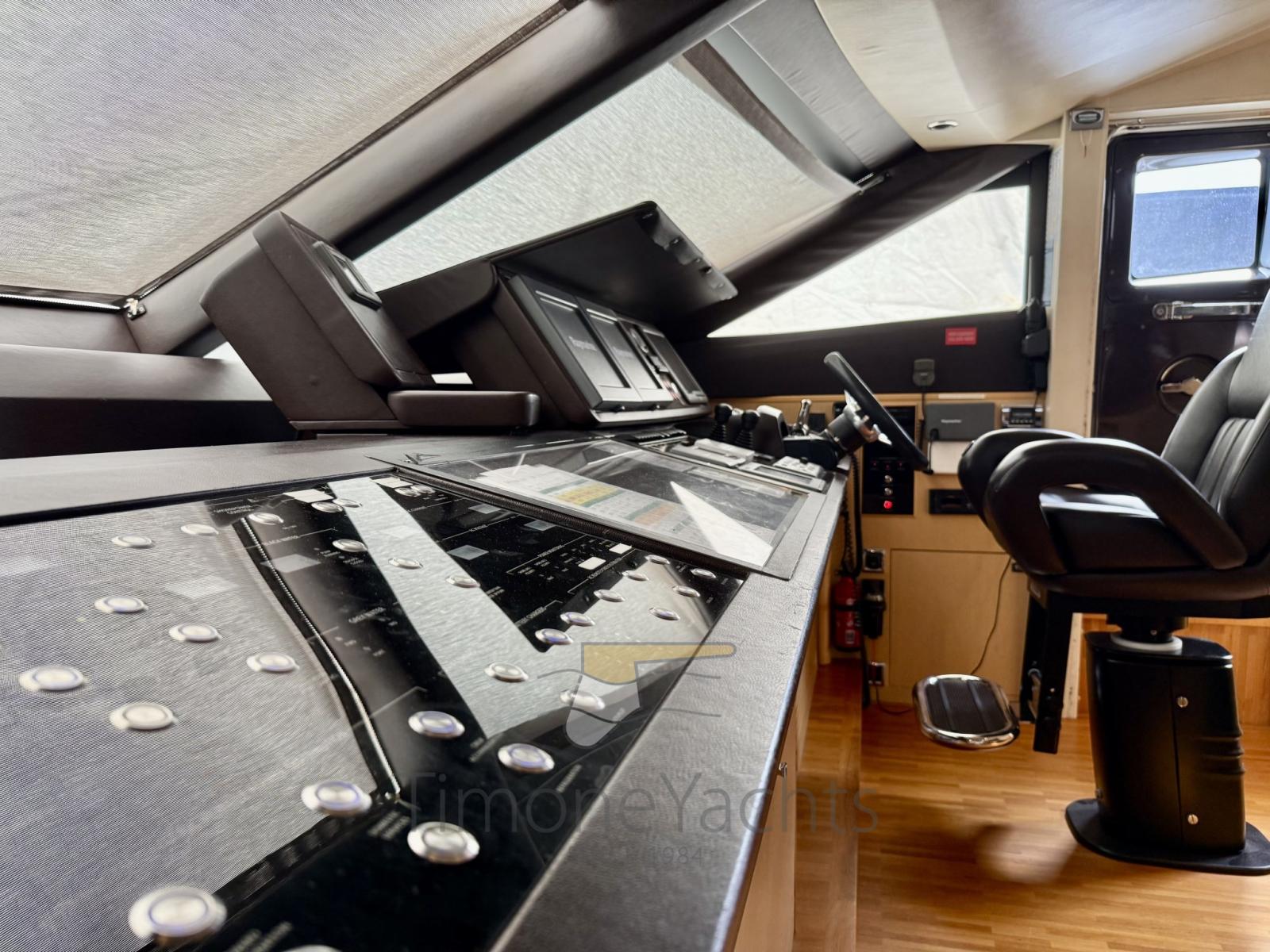 Allarme fumo/gas, 2 Allarme motore, Allarme sentina, Alternatore, Autoclave, Auto-Trim (Hydraulic Bennett in Stainless steel), Batterie (All new 2021), Camminamenti laterali in teak, Caricabatterie (Mastervolt Charmgemaster Plus), Doccia esterna, Doppia timoneria, Flap idraulici, Gruette per tender su fly, Impianto antincendio, Indicatori Flaps, Lavaggio catena, Luci di cortesia, 2 Luci subacquee, Passerella (elettroidraulica), Piattaforma (elettroidraulica), 5 Pompa di sentina automatica, Ponte in teak, Porta ingresso, Porta laterale, Pozzetto Teak, Presa 220V banchina, Presa acqua banchina, Rollbar, Salpa Ancore Elettrico, Scaletta da bagno, Stabilizzatori (ABT Trac Hydraulic Fins), Tavolo pozzetto, Tromba, 2 Winch tonneggio di poppa, Winch tonneggio di prua.