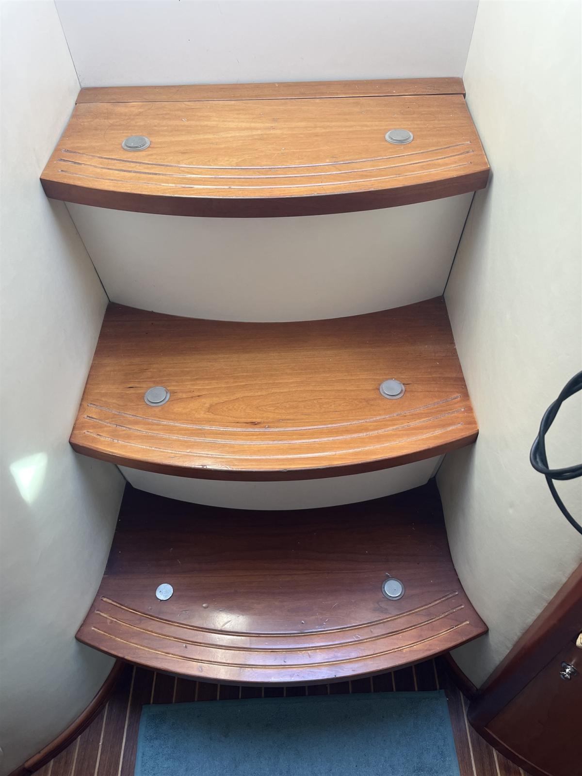 Allarme motore, Allarme sentina, Apertura Vano Motore Elettrica, Autoclave, 3 Batterie, Cavo corrente di banchina, Doccia esterna (calda e fredda), Faro orientabile, Flap idraulici, Luci di cortesia, Luci subacquee, Passerella (idraulica), Piattaforma, Pompa di sentina manuale, Pozzetto Teak, Presa 220V banchina, Raddrizzatore, Rollbar, Salpa Ancore Elettrico, Scaletta da bagno, Tavolo pozzetto (a scomparsa elettrico), Tavolo Salone Abbattibile.