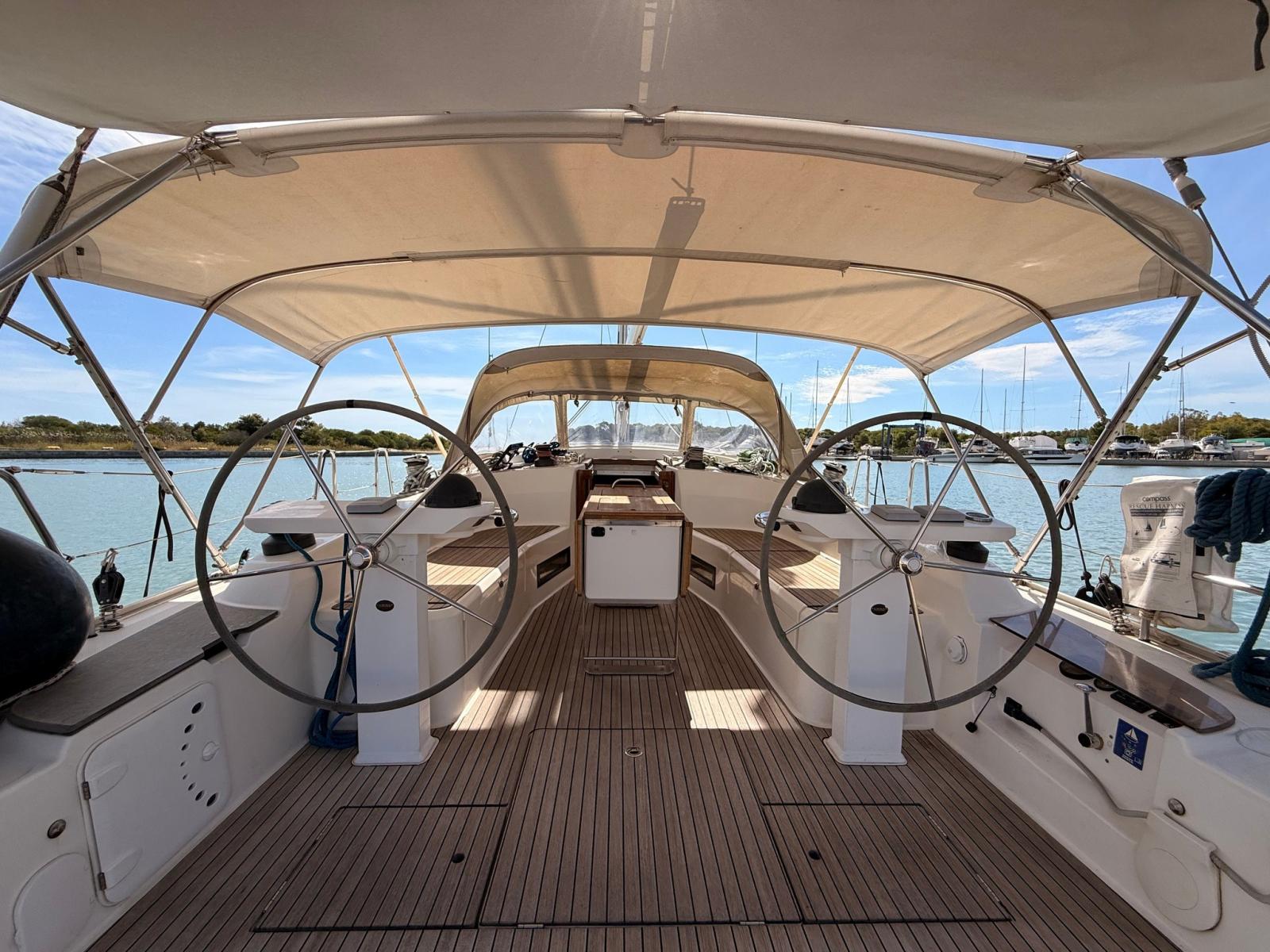 Piattaforma di poppa elettrica, doppia timoneria, cuscineria, bimini e sprayhood, pannelli solari, riscaldamento we-basto e elettronica completa Garmin.