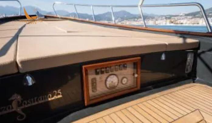 Optional: Tendalino sole con 4 Candelieri, Tendalino Tessilmare, Scaletta Bagno Laterale, Plancetta di Poppa + Scaletta Bagno, Autoclave con Doccia e Serbatoio, Cuscineria Esterna, Poggiaschiena, Cuscini Quadrati Esterni (40×40 con Logo), Ancora Inox 10 Kg+Catena Zincata, Rivestimento Coperta in Teak totale, Rivestimento Teak solo Poppa, Installazione GPS, Nome dell’imbarcazione in Mogano, Tavolo Esterno (con colonna inox), Consolle + Sedile, Elica di Prua, Albero, Verricello Elettrico.