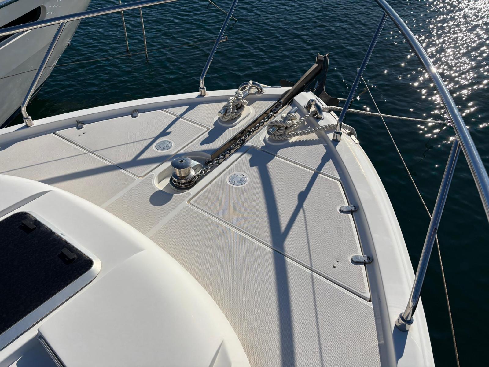 Allarme sentina, Autoclave, Cavo corrente di banchina, Corrimano di sicurezza, Doccia esterna, Doppia timoneria, Impianto antincendio, Indicatori Flaps, Lavandino nel Pozzetto, Parabordi, Passerella, Piattaforma, Pompa di sentina automatica, Pompa di sentina manuale, Pompa per Acqua di Mare, Pozzetto Teak, Raddrizzatore, Rollbar, Salpa Ancore Elettrico, Scaletta da bagno, Tavolo pozzetto, Tender, Winch tonneggio di poppa, Winch tonneggio di prua.