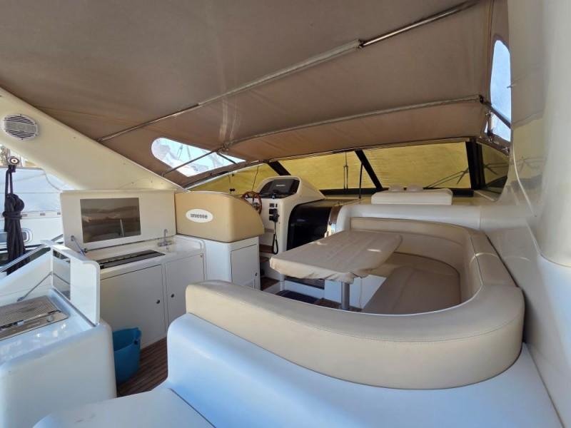 Gli interni, raffinati e funzionali, offrono volumi sorprendenti per la categoria, con ambienti accoglienti e ben distribuiti, ideali per vivere il mare con stile. L'Uniesse 42 è inoltre molto ben equipaggiato con elica di prua, generatore, elettronica Raymarine con autopilota, passerella idraulica, spiaggetta di poppa e cucina completa con doppio frigorifero interno/esterno e piano cottura in vetroceramica.