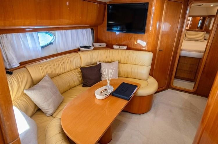 Tra il 2025 e il 2024 ha infine beneficiato di un refit importante, con revisione generale dei motori, assi e scambiatori, riequilibratura delle pale, nuova moquette interna, nuovi tendalini e sostituzione delle prese a mare. Nel 2020 è stato rifatto il teak della plancetta. Pronta alla boa - Entra in MediaShip.it e consulta le Schede descrittive, con oltre 6.000 tra Immagini e Video, potrai prenotare la tua Video Visita a bordo, acquistare e vendere il tuo Posto Barca e riservare le migliori imbarcazioni e Location per le tue vacanze in barca.