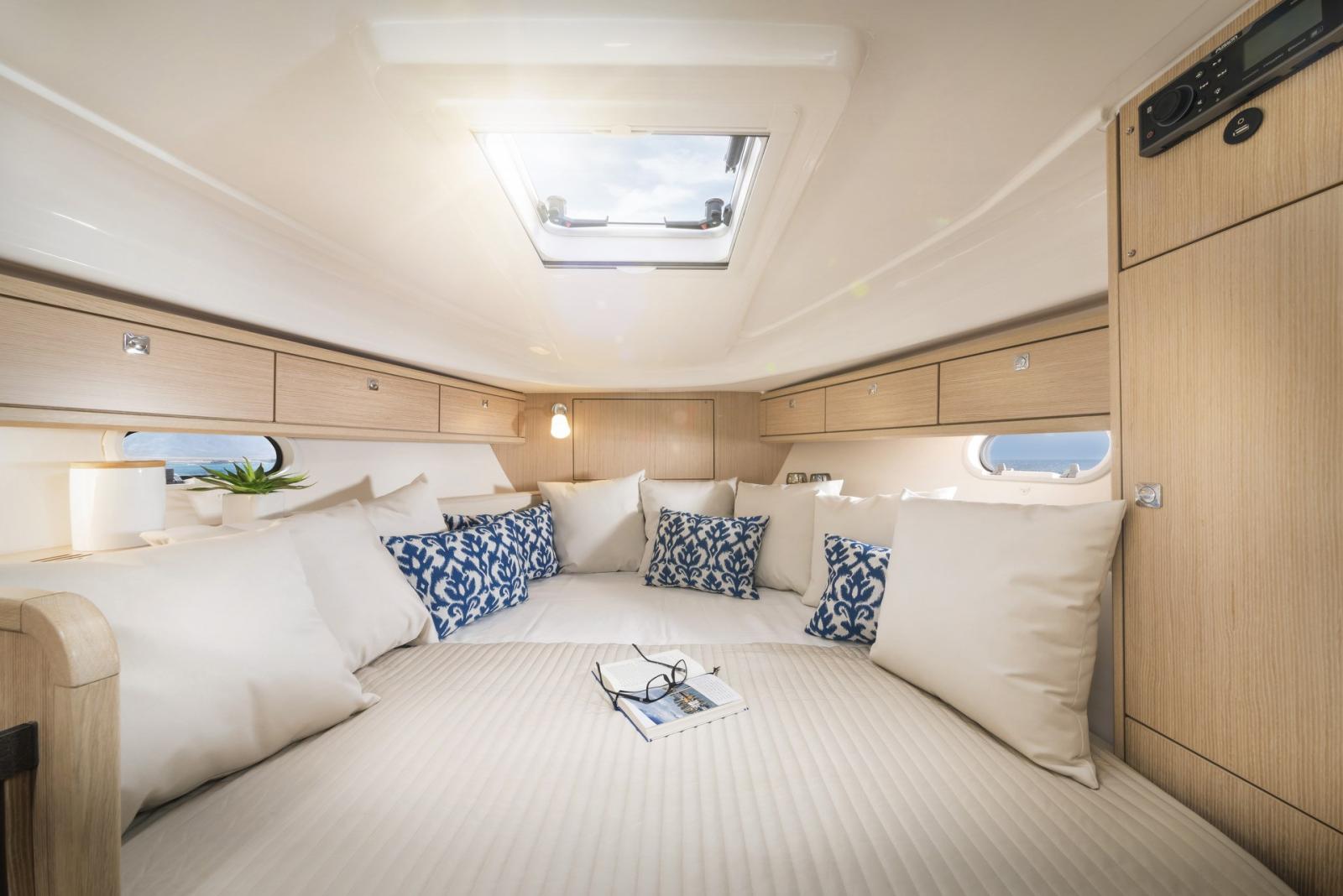 Boiler, Indicatore del serbatoio del carburante, Indicatore del Serbatoio dell’Acqua, Indicatore della temperatura del motore, Pavimento interno in legno, Prese interne 12v, Prese interne 220v, Serbatoio Acque Nere, WC marino elettrico.