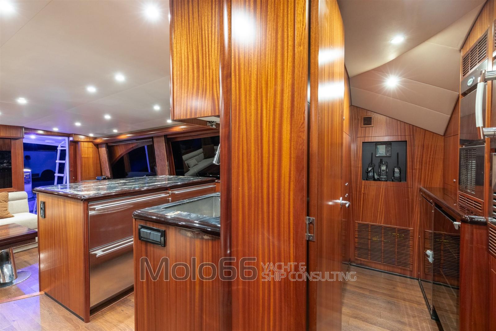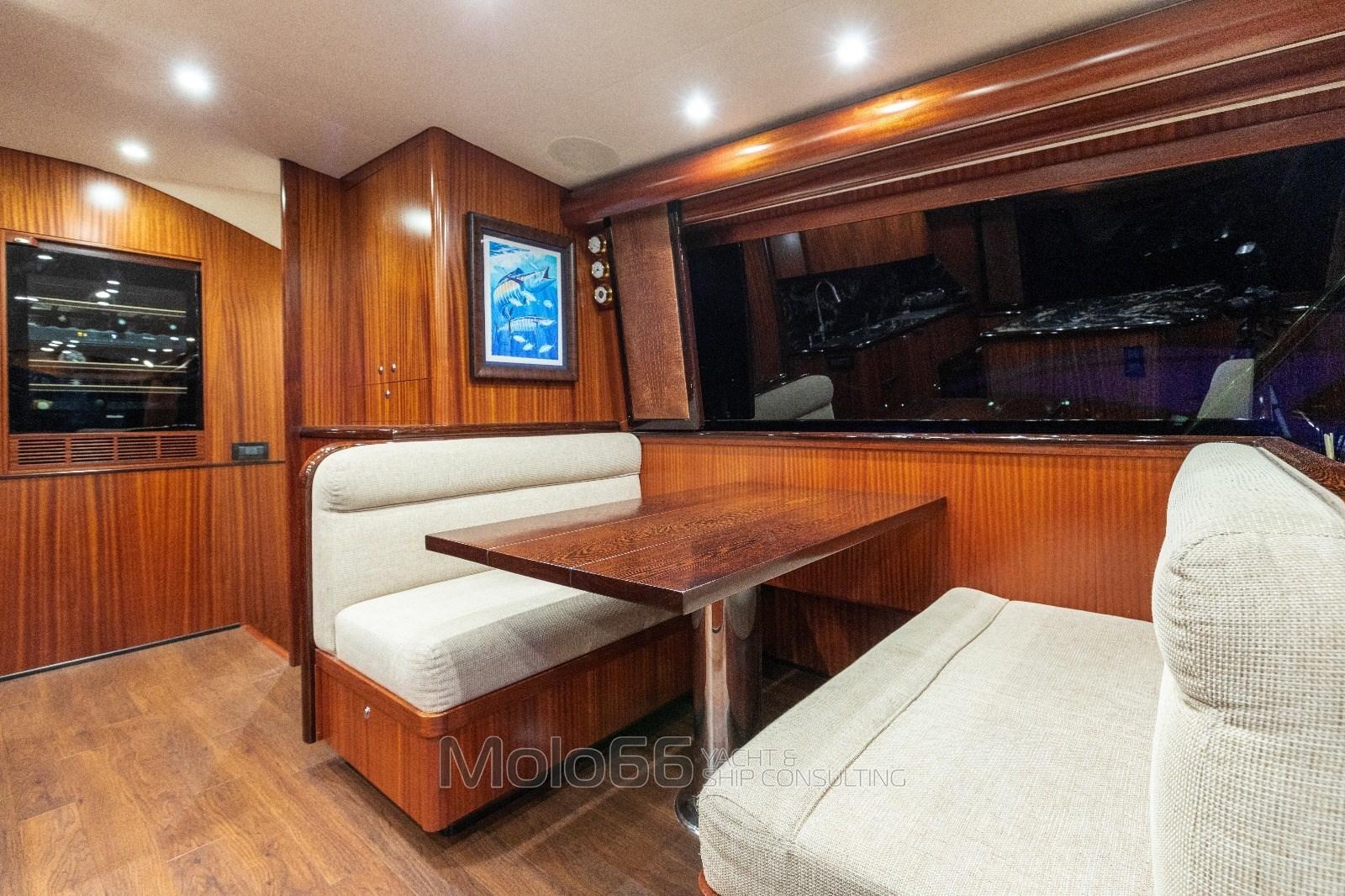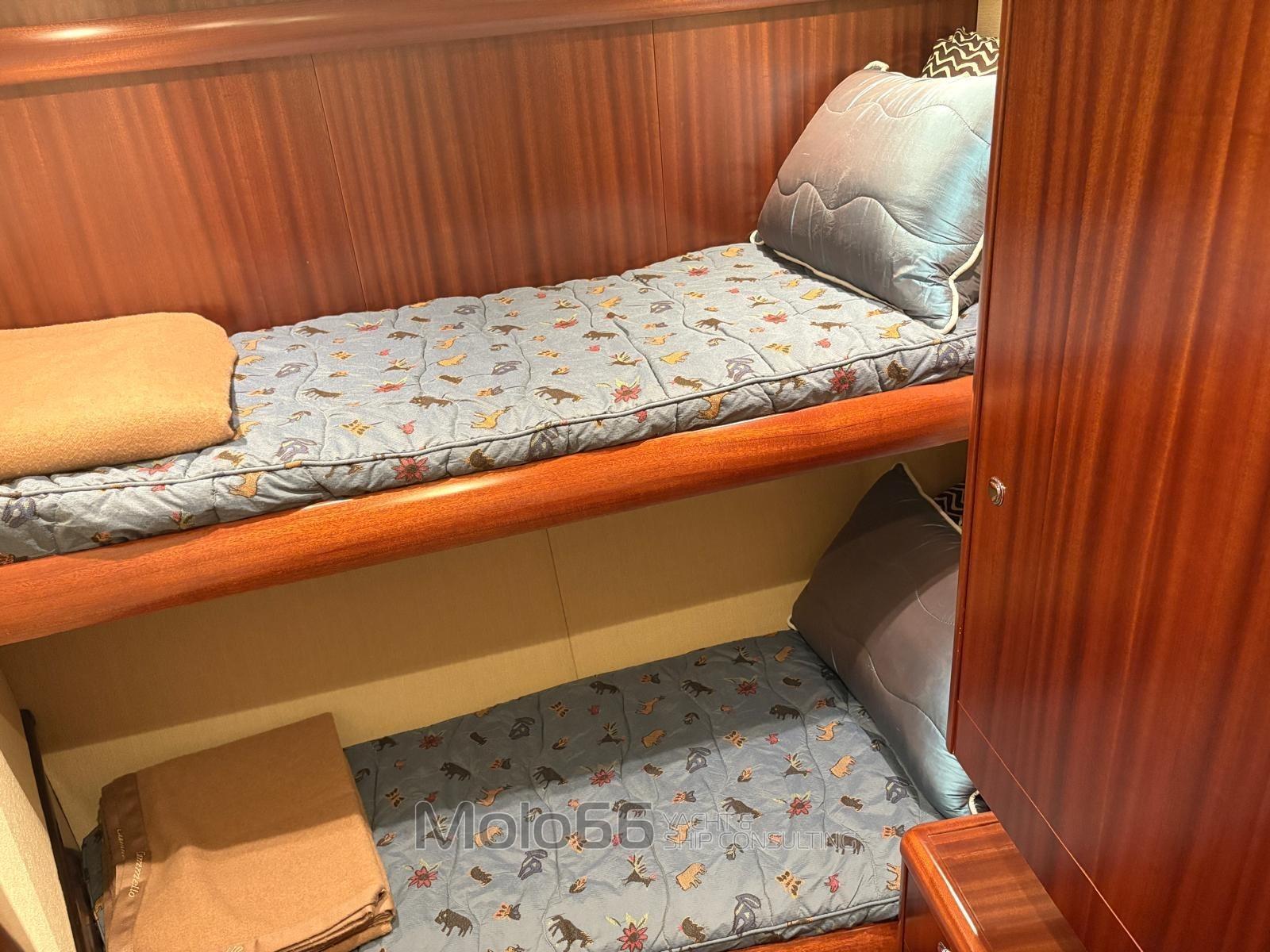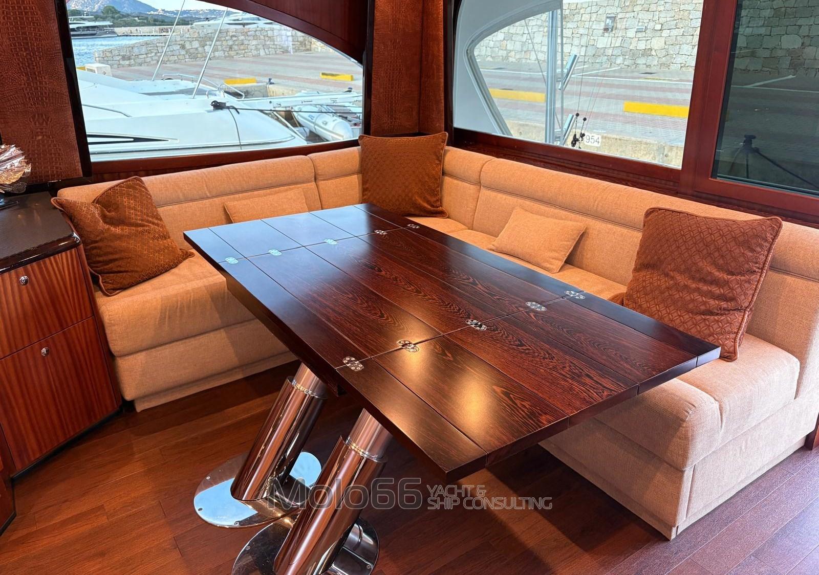 Acqua Calda, Boiler, Cassaforte, Clima reversibile, Dimmer per Luci, Dissalatore (Sea Recovery Aqua Wesper), Impianto acque nere, Indicatore del serbatoio del carburante, Indicatore del Serbatoio dell’Acqua, Indicatore del Serbatoio delle Acque Reflue, Pavimento interno in legno, Prese interne 12v, Prese interne 220v, Serbatoio Acque Nere, 5 Telecamera ((3 engines room) + Flir termo), 3 WC marino elettrico.
